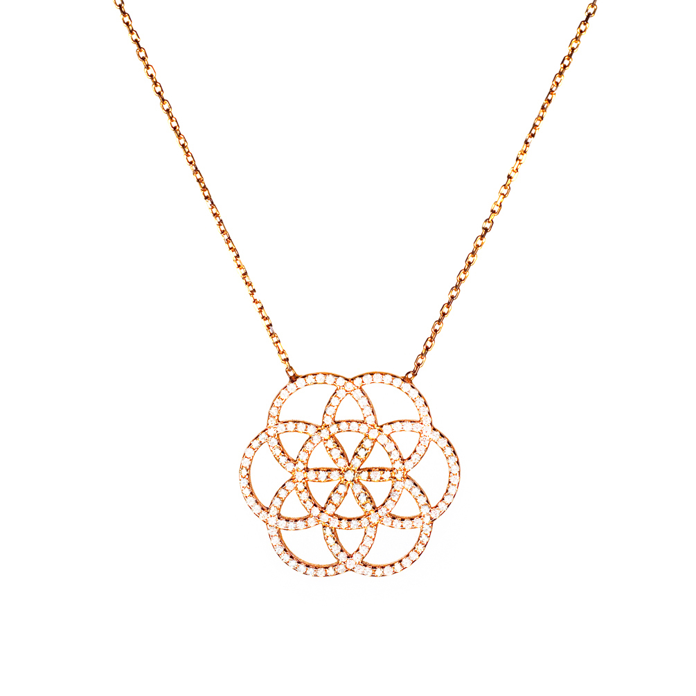 Fabelhafte Halskette mit herrlichem Seed of Life Anhänger aus rosévergoldetem, zirkonia-besetztem Sterling Silber!