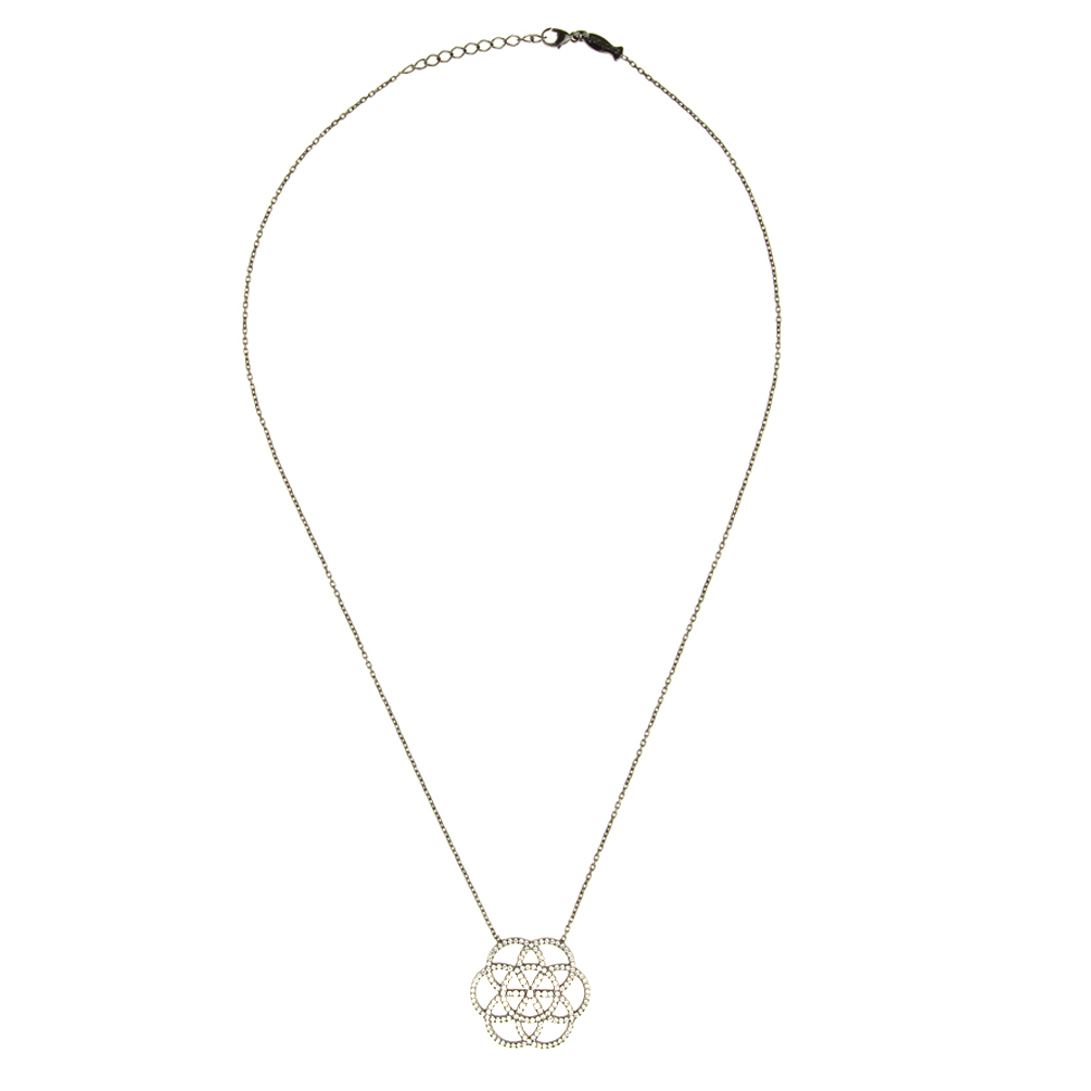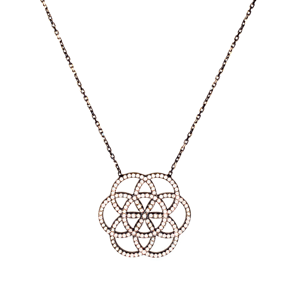 Fabelhafte Kurshuni Halskette mit herrlichem Seed of Life Anhänger aus geschwärztem, zirkonia-besetztem Sterling Silber!