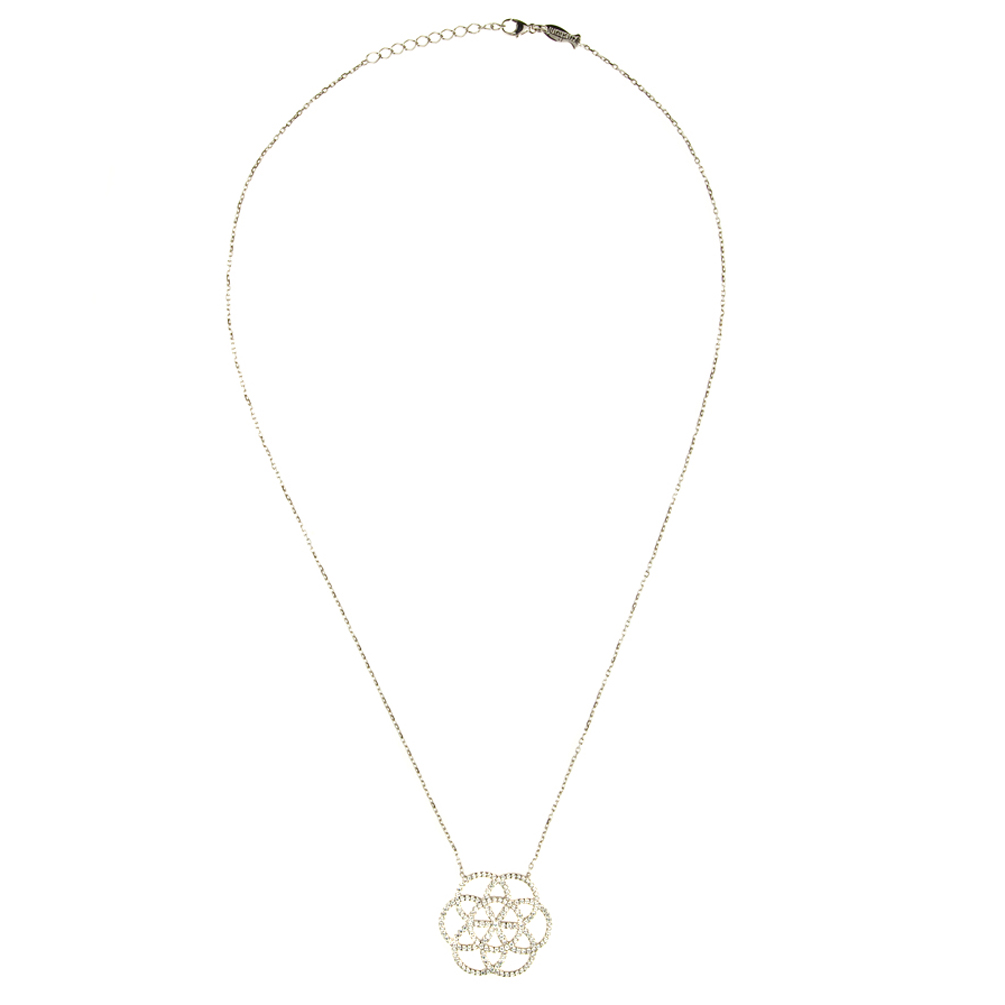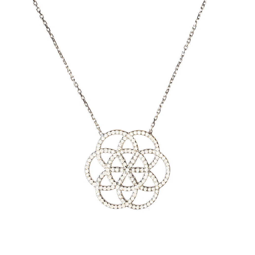 Fabelhafte Kurshuni Halskette mit herrlichem Seed of Life Anhänger aus zirkonia-besetztem Sterling Silber!