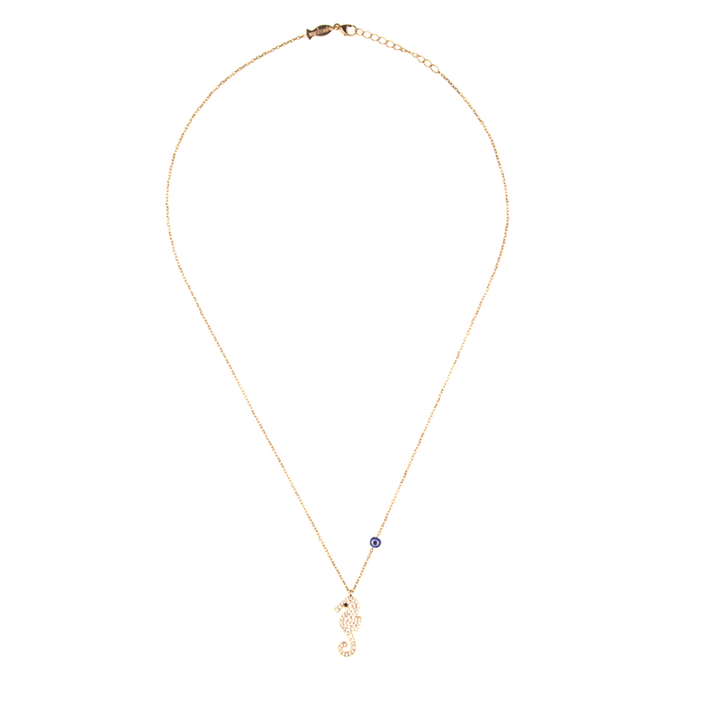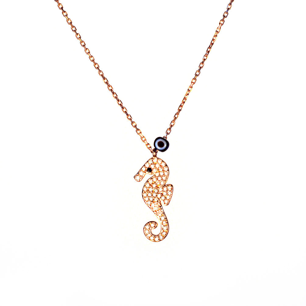 Bezaubernde Kurshuni Halskette mit glitzerndem Seepferdchen aus rosévergoldetem, zirkonia-besetztem Sterling Silber!