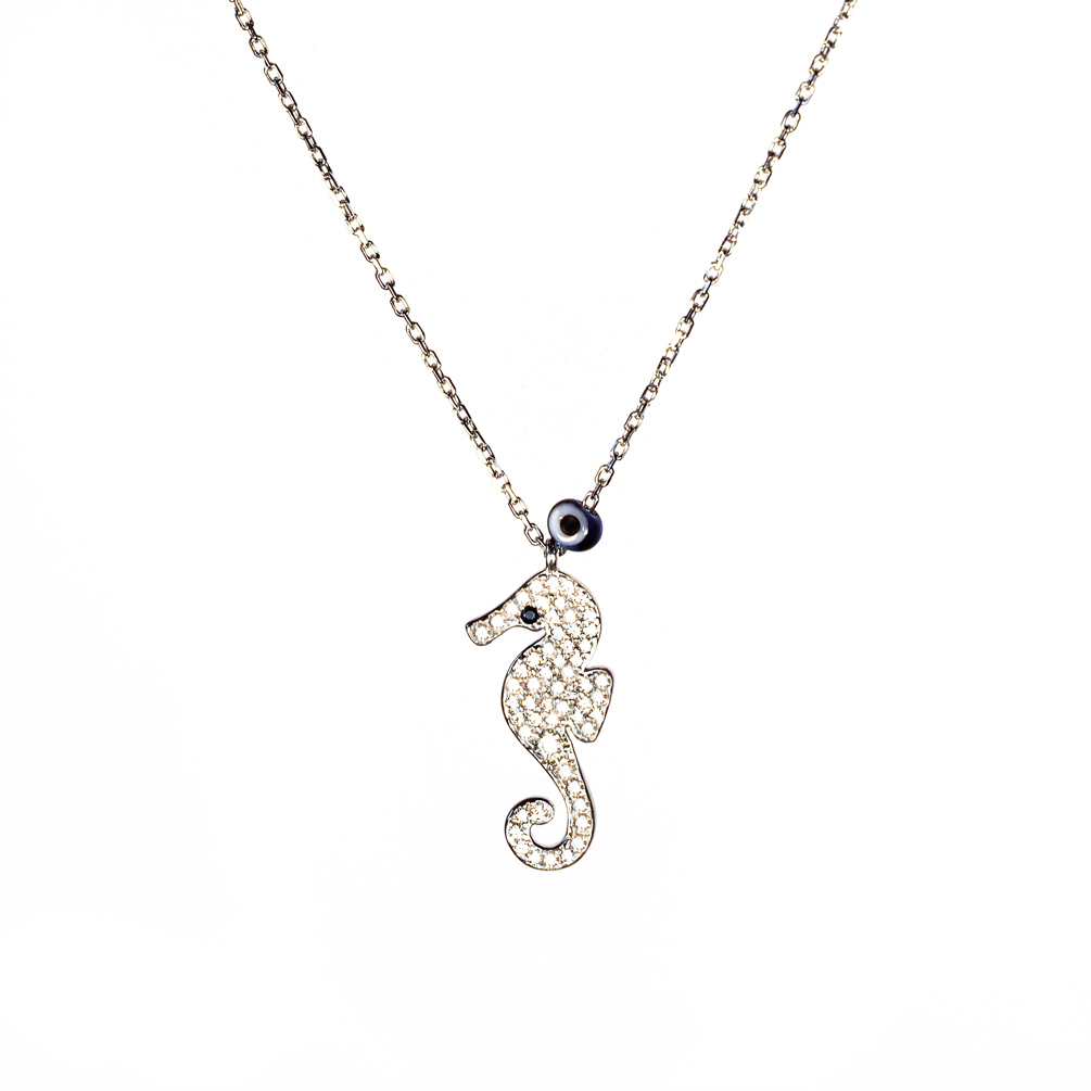 Bezaubernde Halskette mit glitzerndem Seepferdchen aus zirkonia-besetztem Sterling Silber!