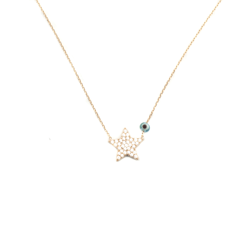 ↵Funkelnde Halskette mit glitzerndem Stern aus rosévergoldetem Sterling Silber und Zirkonias!