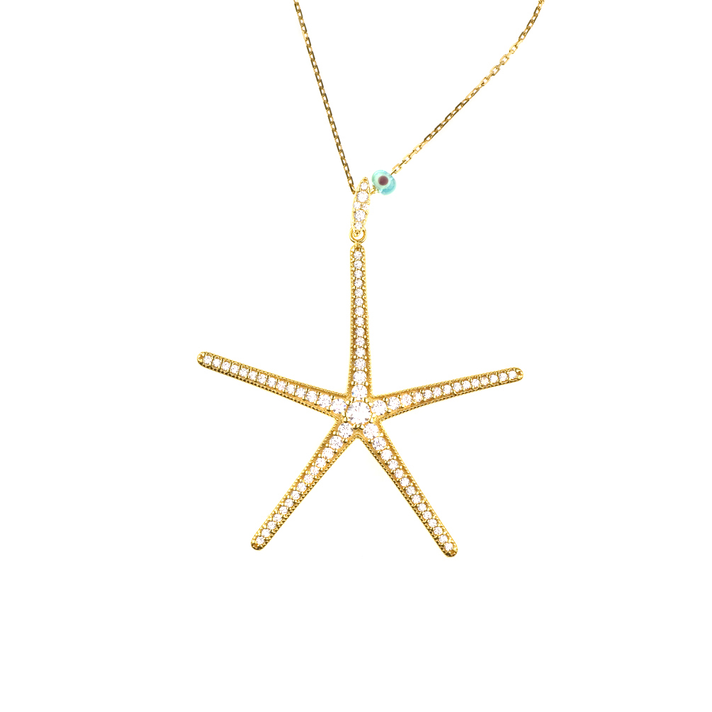 Fantastische, filigrane Kurshuni Halskette mit funkelndem Stern aus vergoldetem Sterling Silber und Zirkonias!