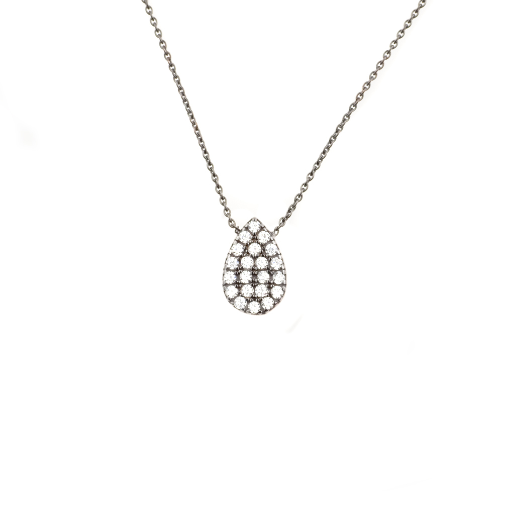- Tropfen aus geschwärztem Sterling Silber (925)mit einzeln gefassten Zirkonias: ca. 6 mm x 10 mm.