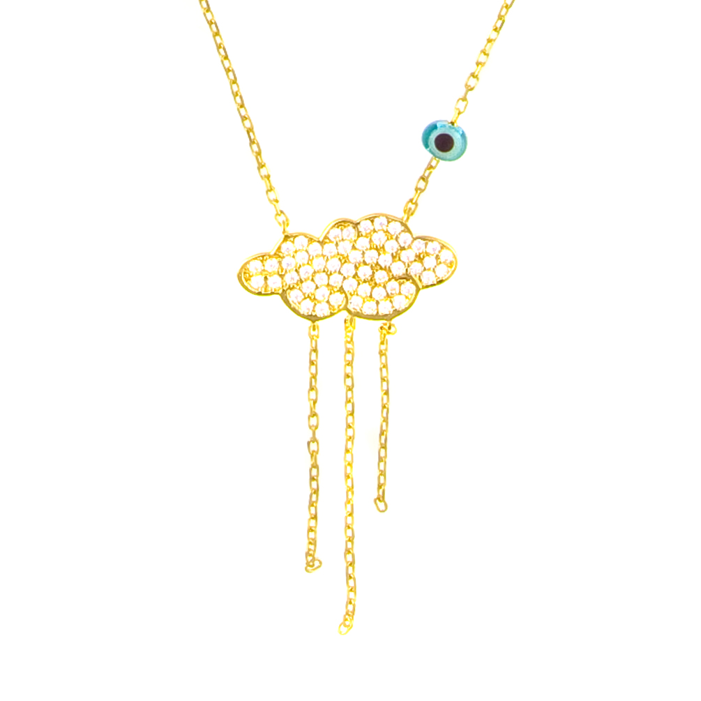 Verspielte Kurshuni Halskette aus vergoldetem Sterling Silber mit bezaubernder Wolke aus funkelnden Zirkonias!