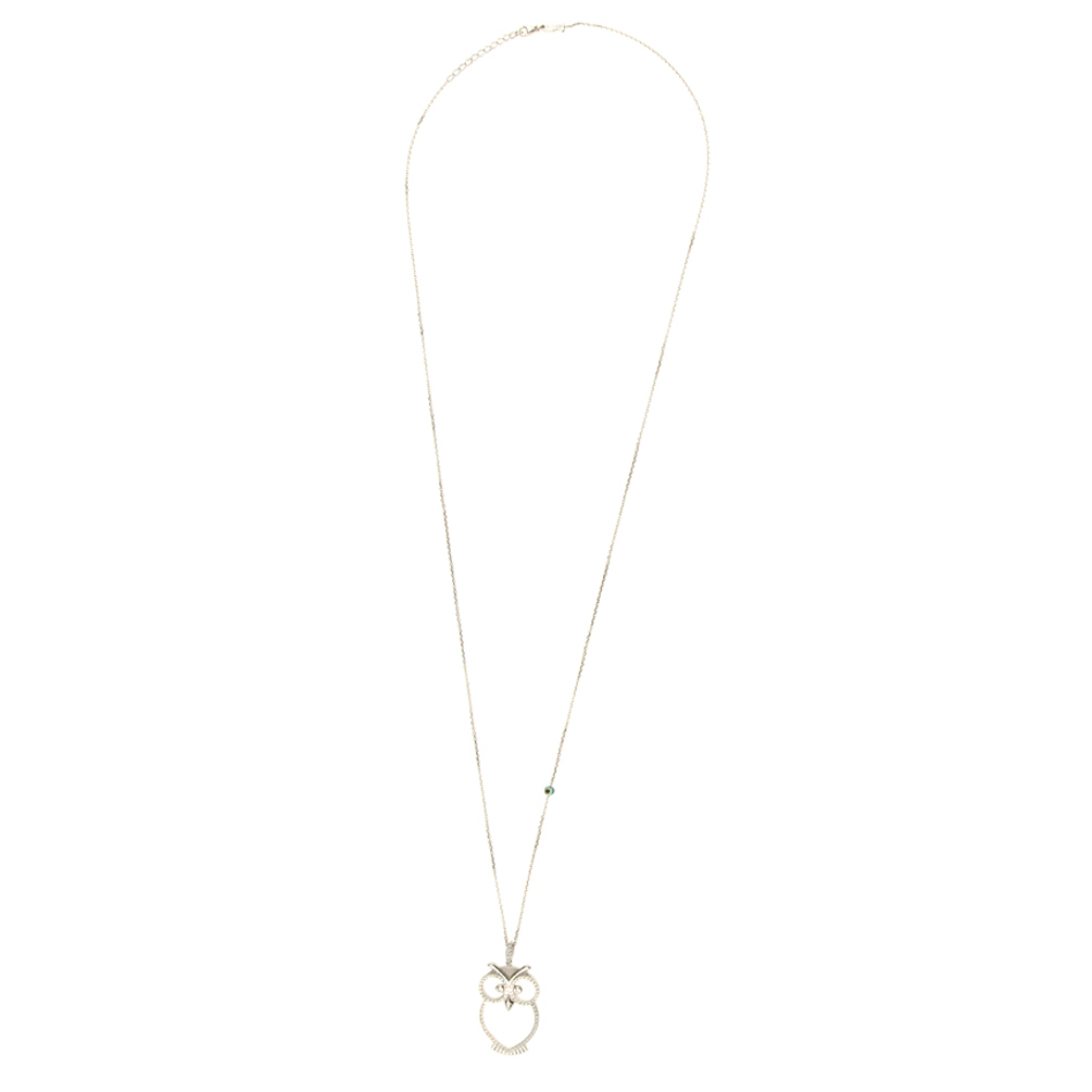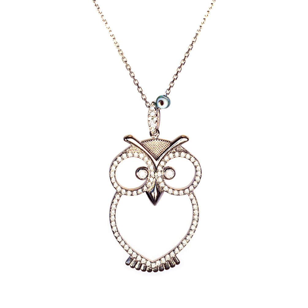 Fantastische Halskette mit verspielter Eule aus Sterling Silber, besetzt mit leuchtenden Zirkonias!