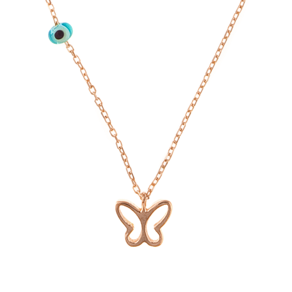 Zauberhafte Kurshuni Halskette mit verspieltem Schmetterling aus rosévergoldetem Sterling Silber!