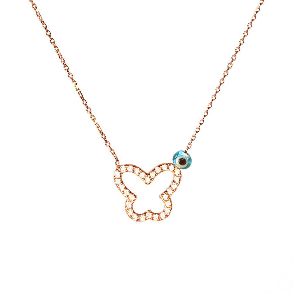 Verspielte kleine Halskette mit fantastischem Schmetterling aus rosévergoldetem Sterling Silber mit funkelnden Zirkonias!