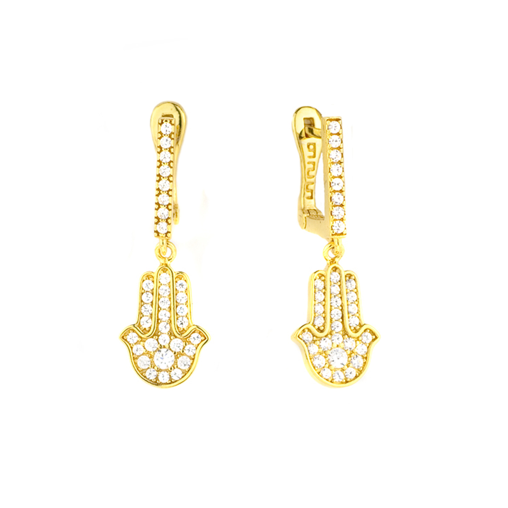Herrliche Kurshuni Ohrringe mit Hand der Fatima aus vergoldetem Silber und funkelnden Zirkonias!