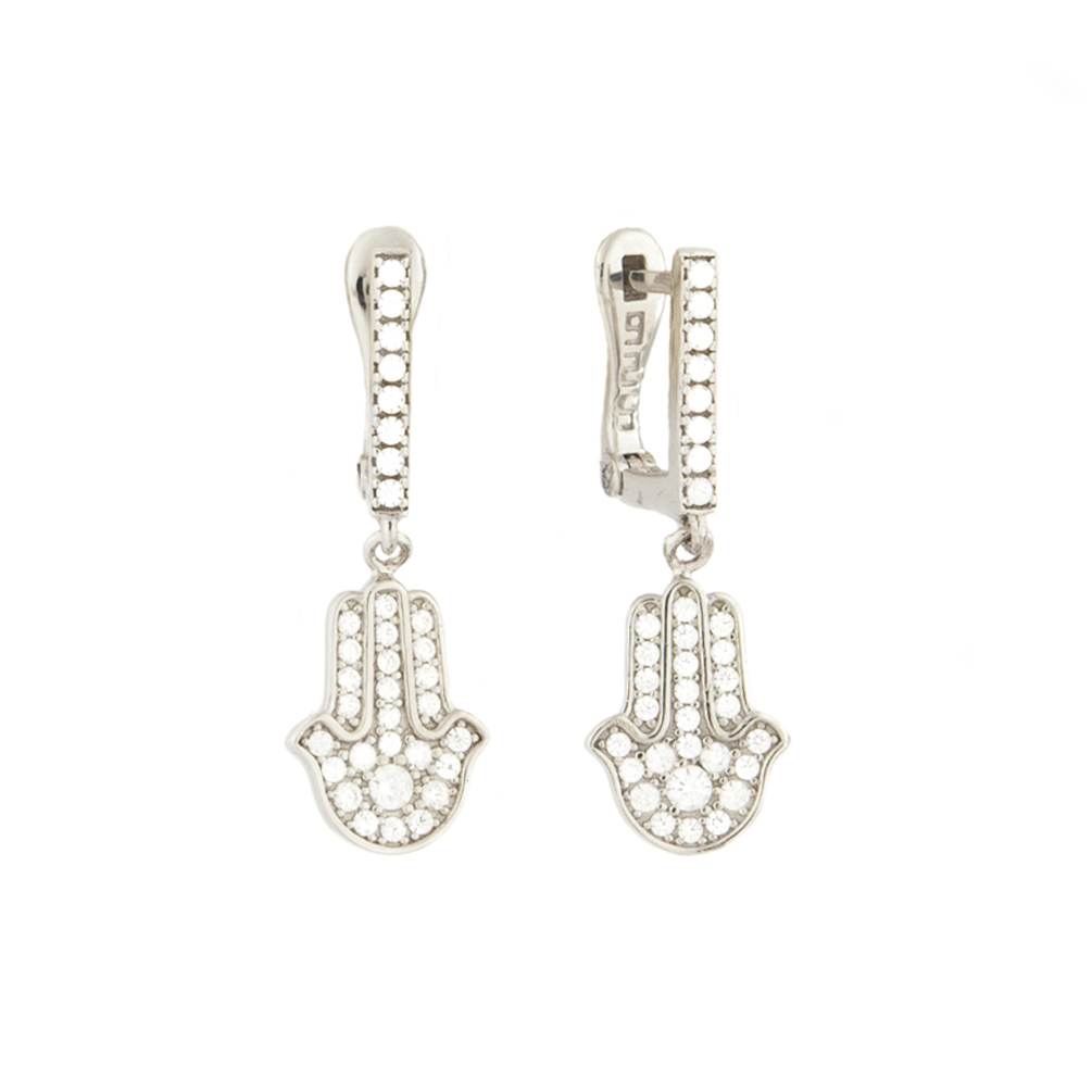 Herrliche Kurshuni Ohrringe mit Hand der Fatima aus Sterling Silber und funkelnden Zirkonias!
