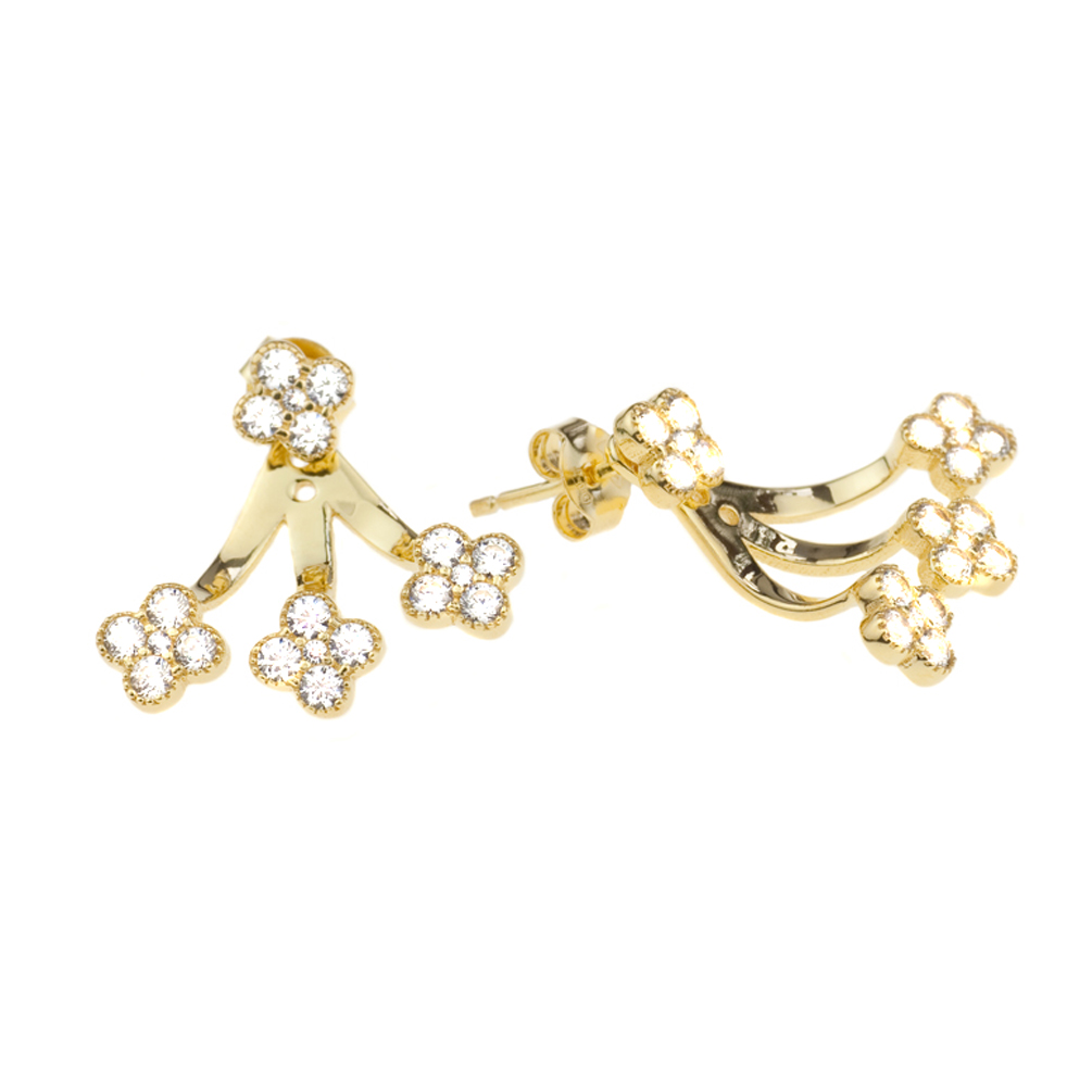 Herrliche Kurshuni Ohrstecker mit verspielten kleinen Kleeblättern aus vergoldetem Sterling Silber, besetzt mit glitzernden Zirkonias!