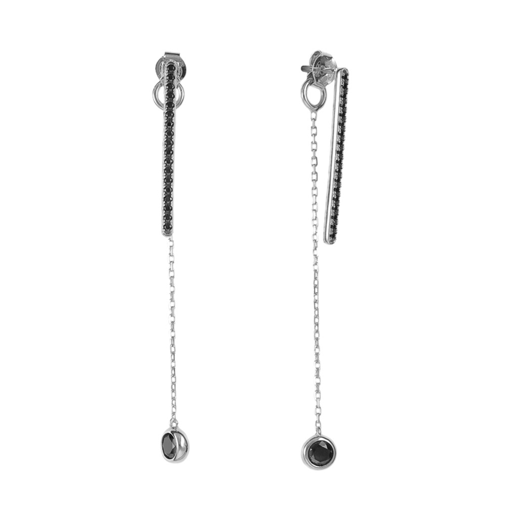 Geniale Kurshuni Ohrringe mit elegantem Stil aus rhodiniertem Sterling Silber und schwarzen Natur-Spinellen!