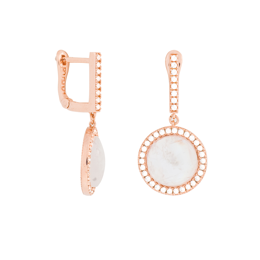 Hinreißende Kurshuni Ohrringe aus rosévergoldetem Sterling Silber mit wunderschönem Mondstein umringt von glitzernden Zirkonias!