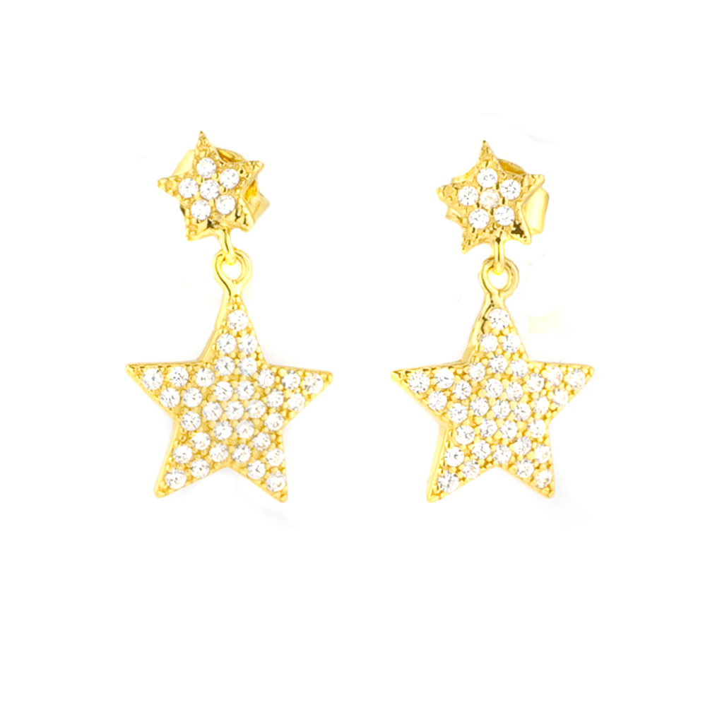 Entzückende und elegante kleine Kurshuni Stern-Ohrstecker aus vergoldetem Silber mit funkelnden Zirkonias!