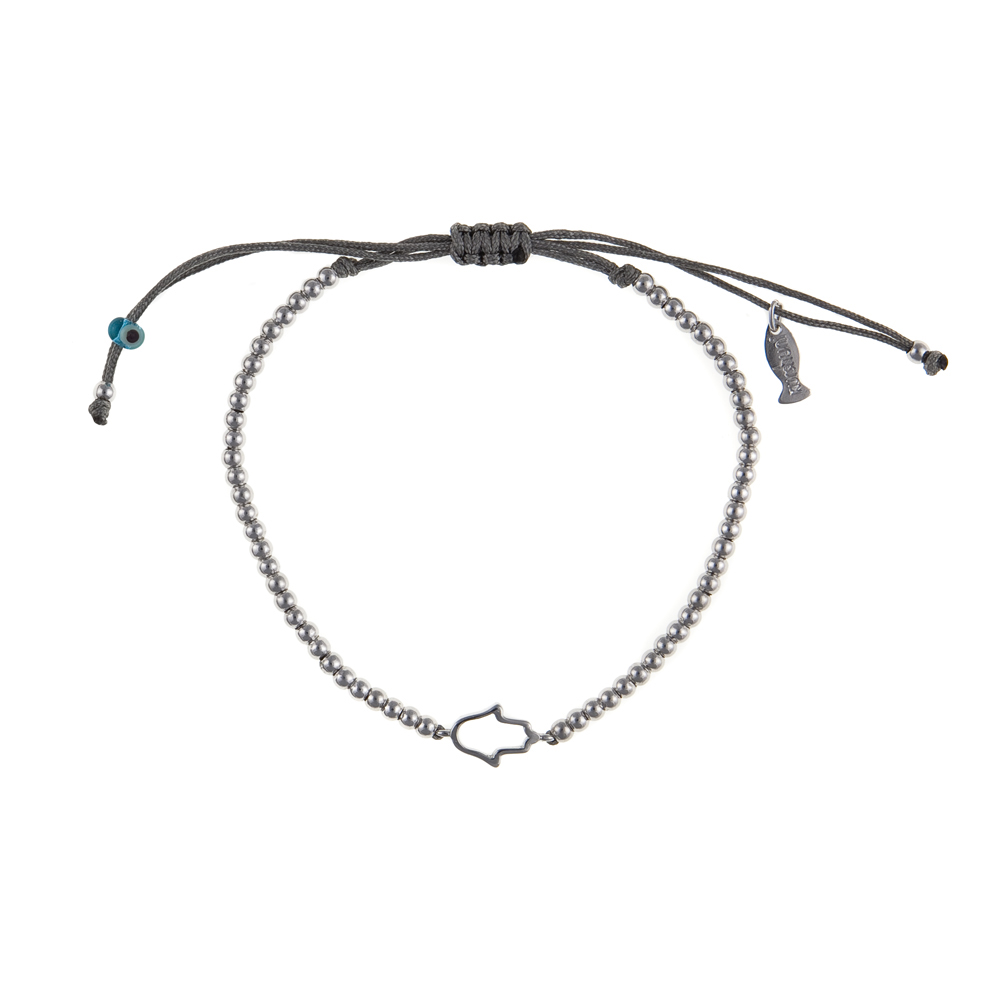 - Perlen und Hand der Fatima aus rhodiniertem Sterling Silber (925).
