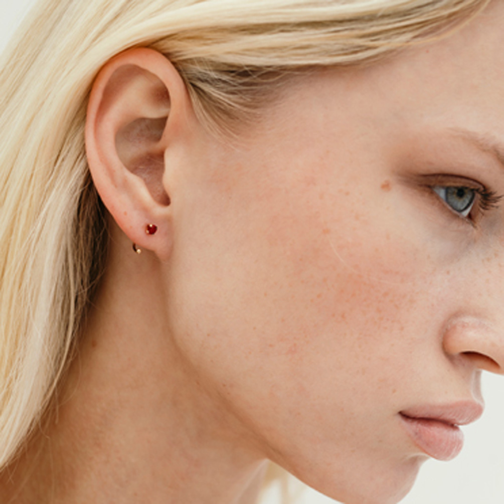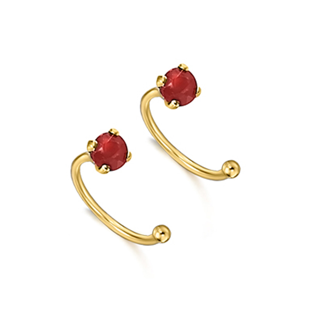 Die wunderschönen und verspielten Ohrringe von LECARRÈ aus 18 kt Gold mit funkelnden Rubinen werden durch das Ohr geführt, wodurch ihre kleine Goldkugel als besonderes Glanzlicht frei unter dem Ohr zu schweben scheint!