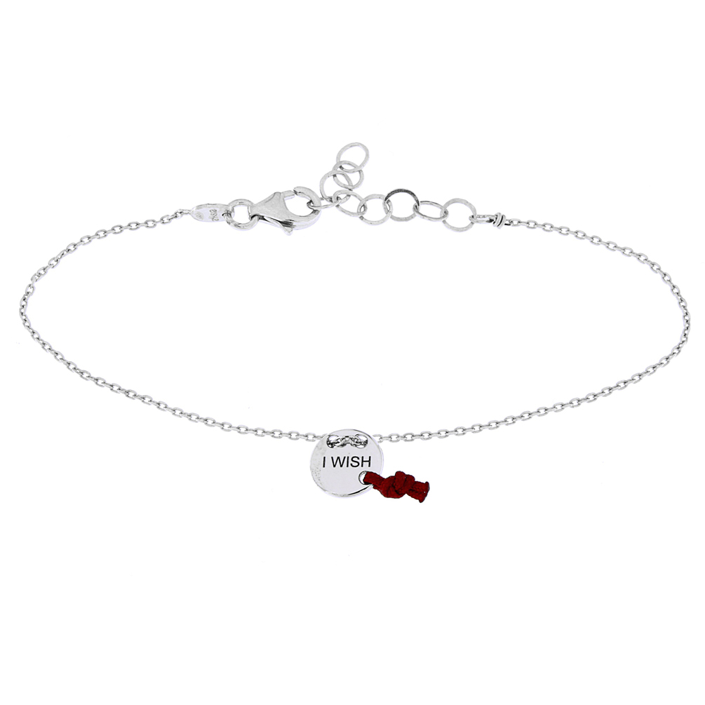 - Anhänger mit "I WISH" Gravur und kleinem rotem Wunschbändchen aus Nylon.