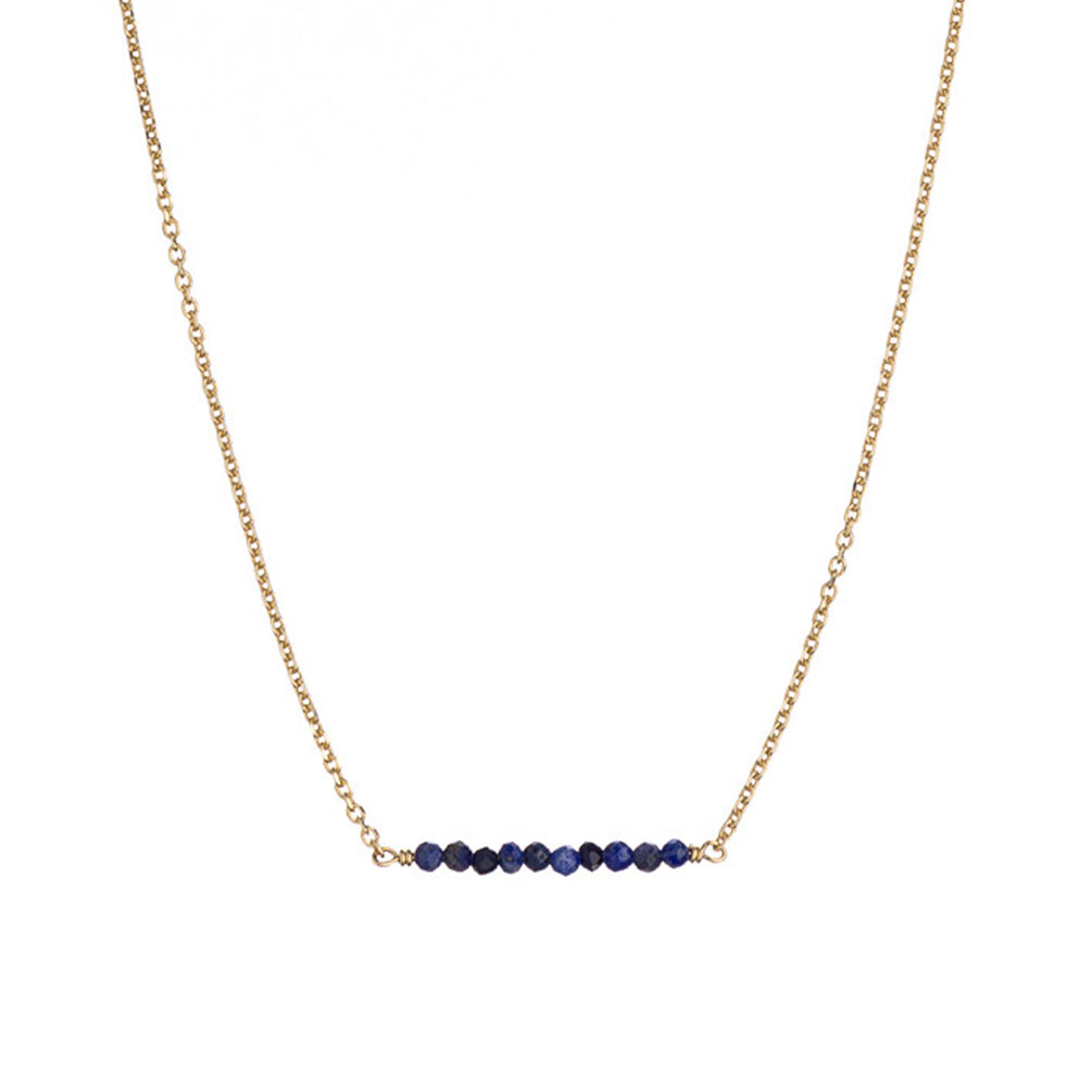 Diese stilvolle, schlichte alisia Halskette aus vergoldetem Sterling Silber begeistert mit ihrer klaren Form und kleinen Perlen aus blauem Sodalith!