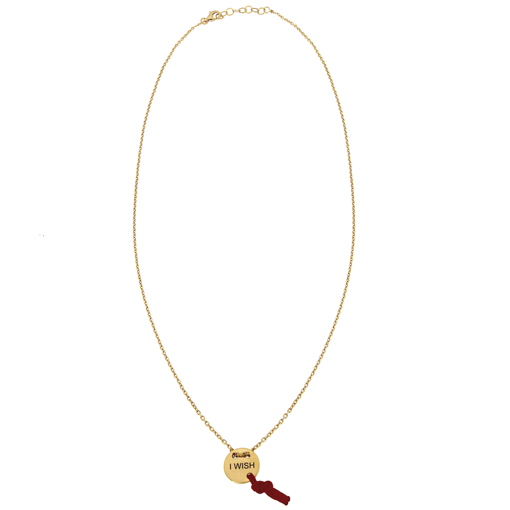- Anhänger mit "I WISH" Gravur und kleinem rotem Wunschbändchen aus Nylon.
