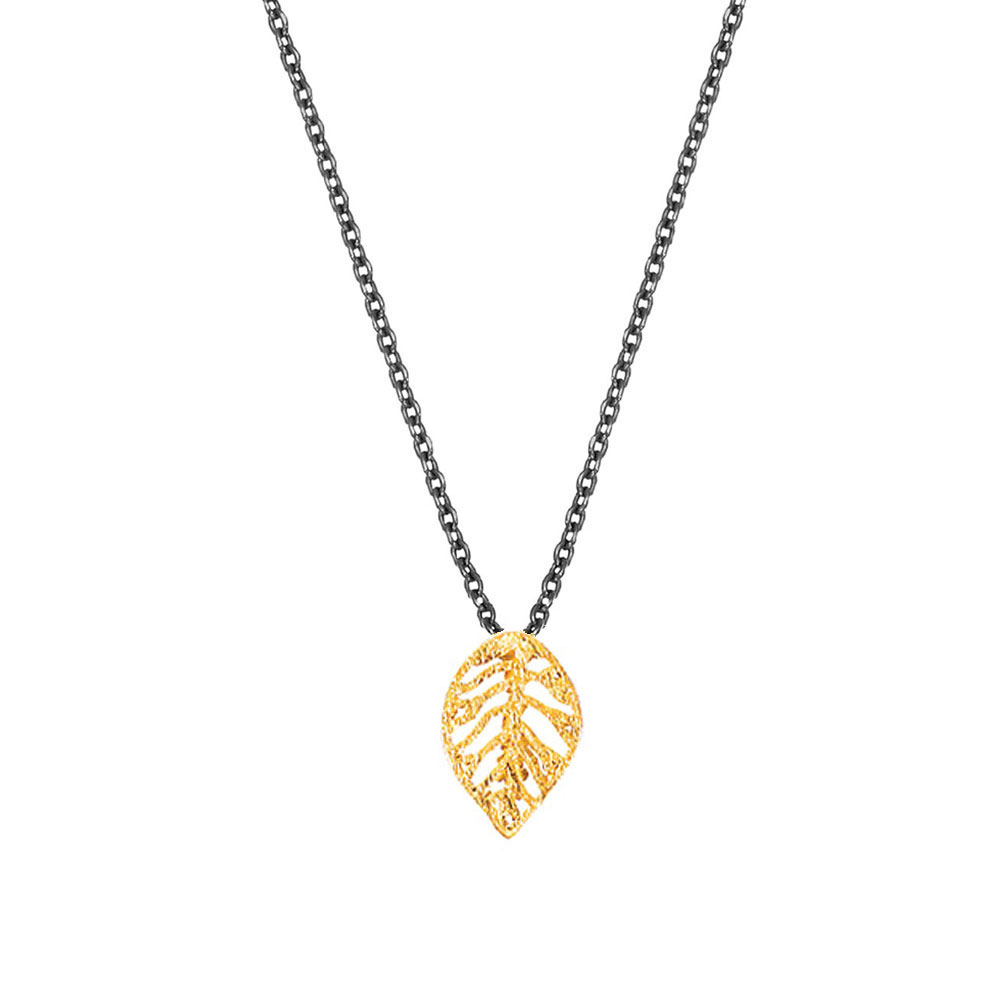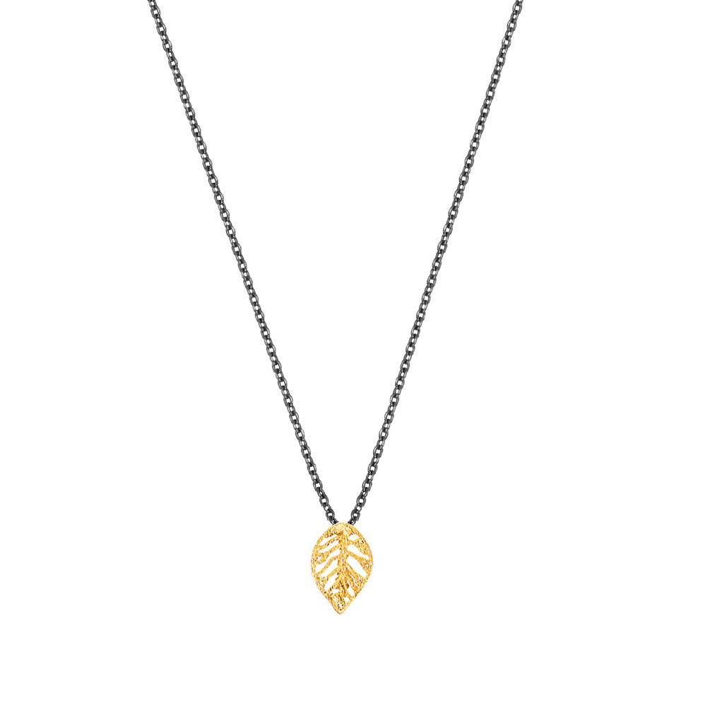 Wunderschöne Halskette von Krinaki Jewelry aus geschwärztem Sterling Silber mit fein gearbeitetem, goldenem Blatt-Anhänger!