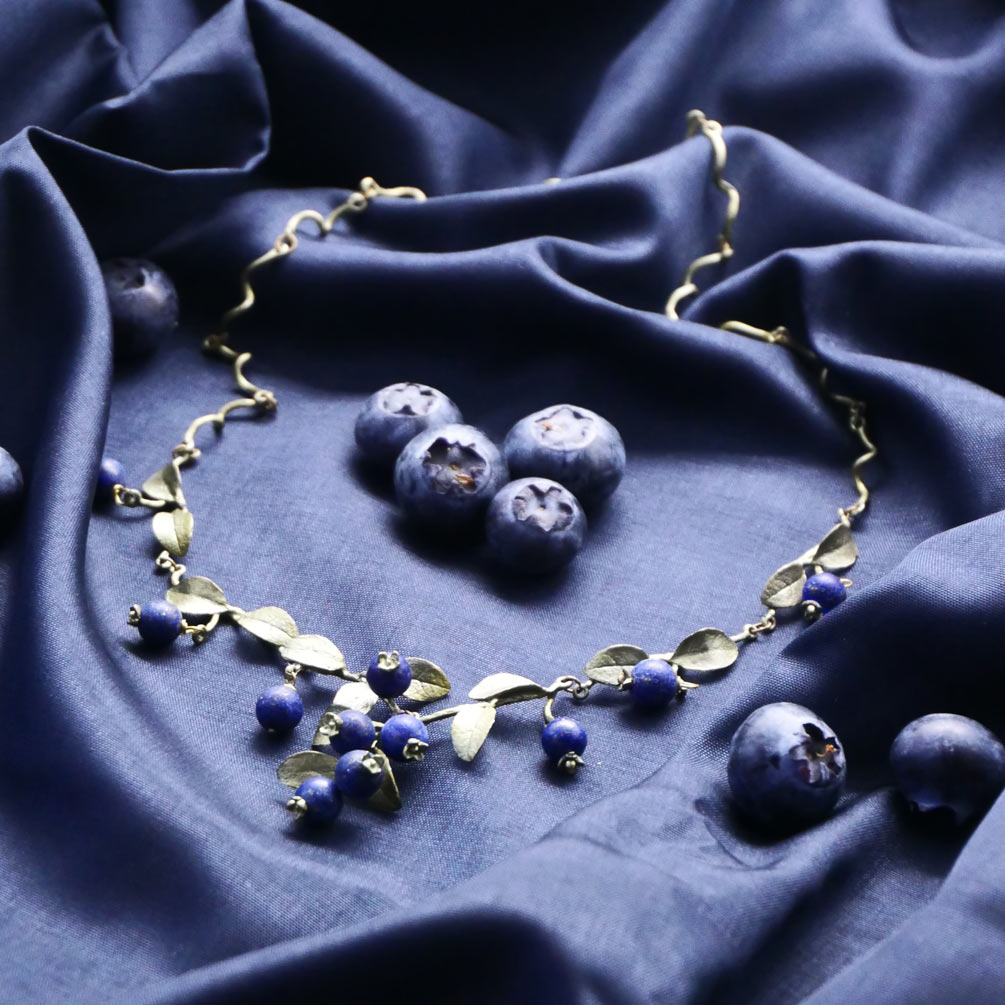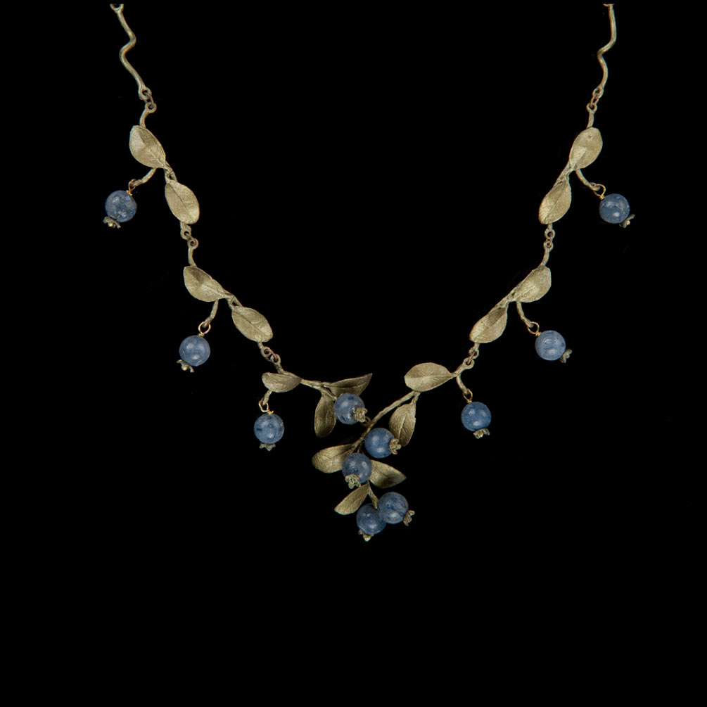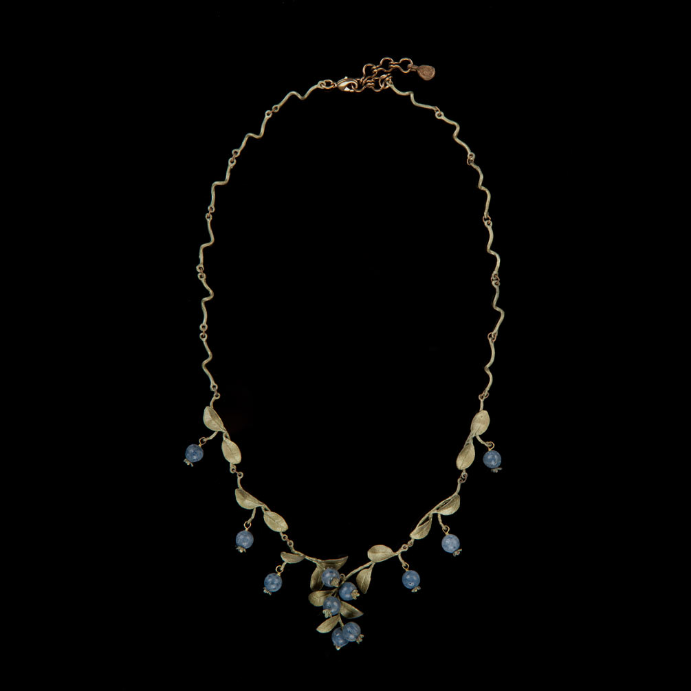 Faszinierende Michael Michaud Halskette mit wunderschönen Blaubeeren aus dunkelblauem Aventurin und zarten Blättern aus handpatinierter Bronze!