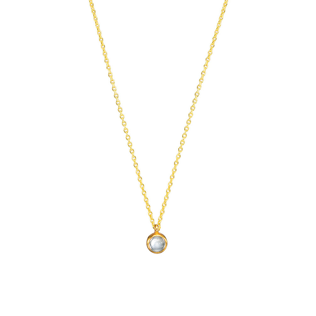 Edle, bezaubernde Halskette von Krinaki Jewelry mit stilvollem, rundem Anhänger aus blauem Topas in goldener Fassung!