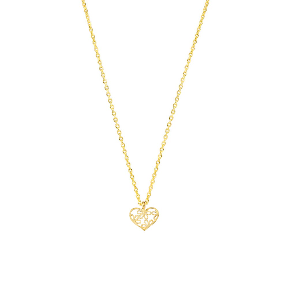 Zuckersüße Halskette von Krinaki Jewelry mit goldenem Herz-Anhänger mit verspielten Blumen-Ornamenten!
