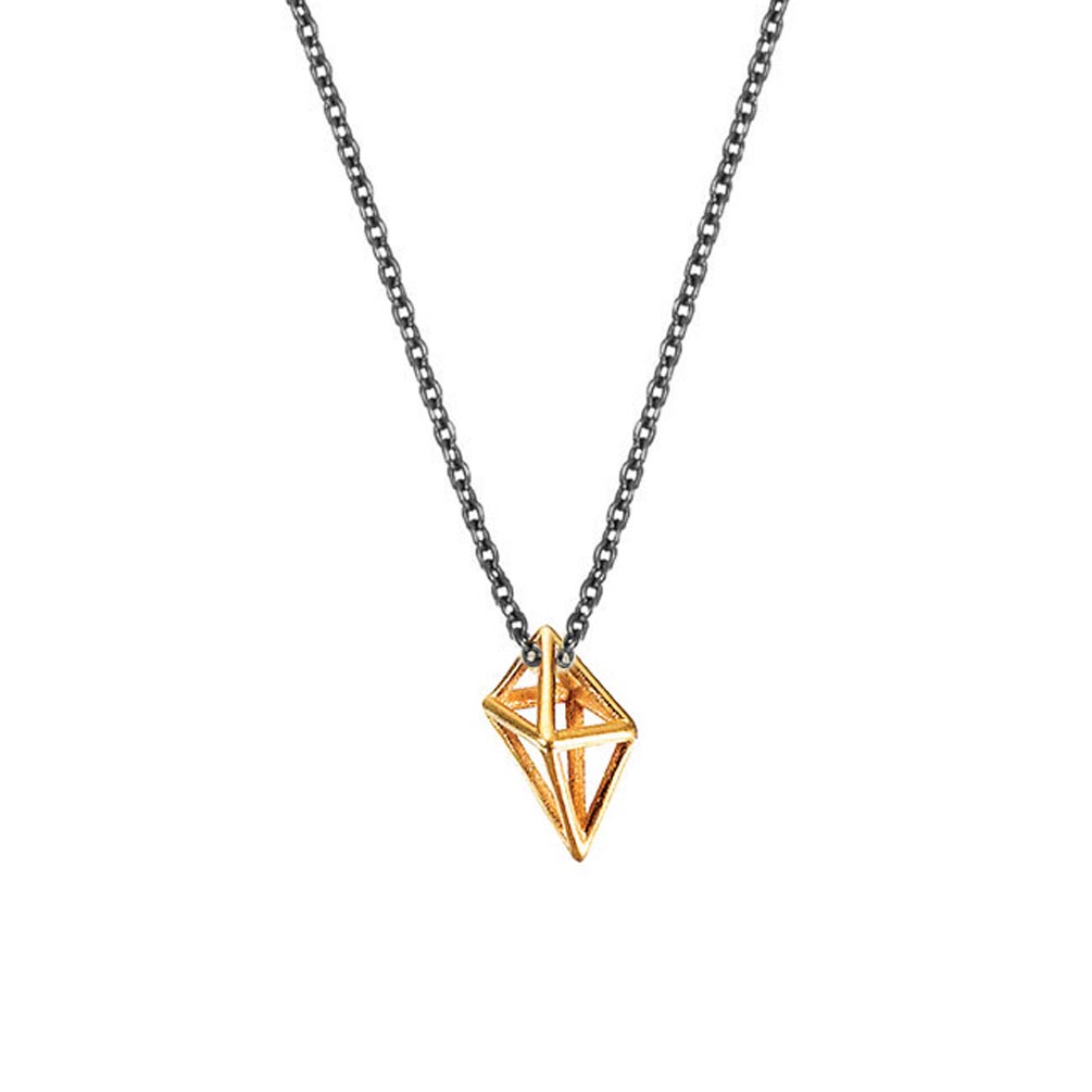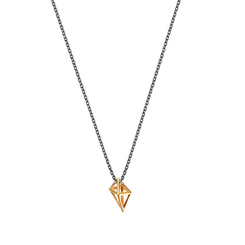 Edle Halskette von Krinaki Jewelry aus geschwärztem Sterling Silber mit faszinierendem Anhänger in Form eines goldenen Diamanten!