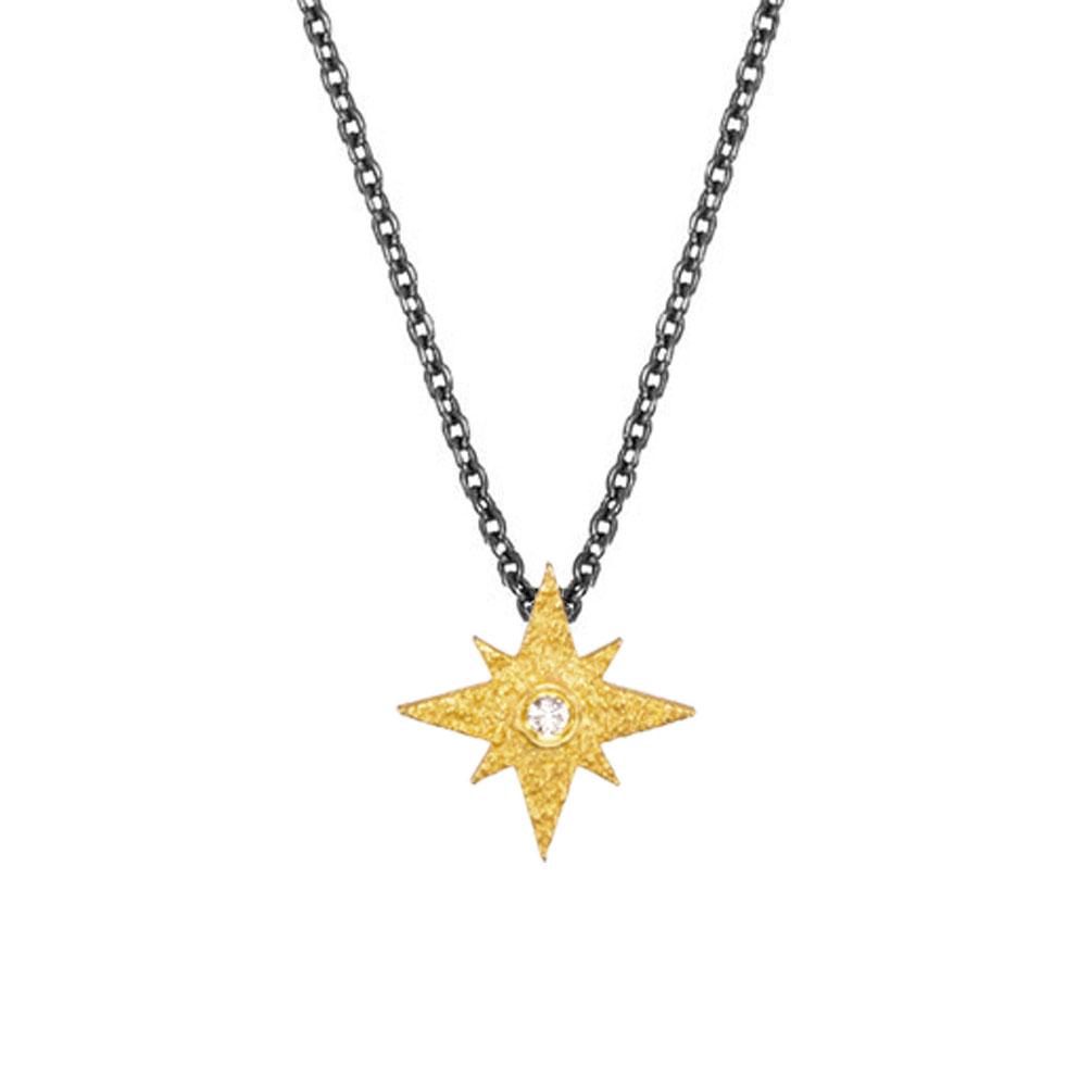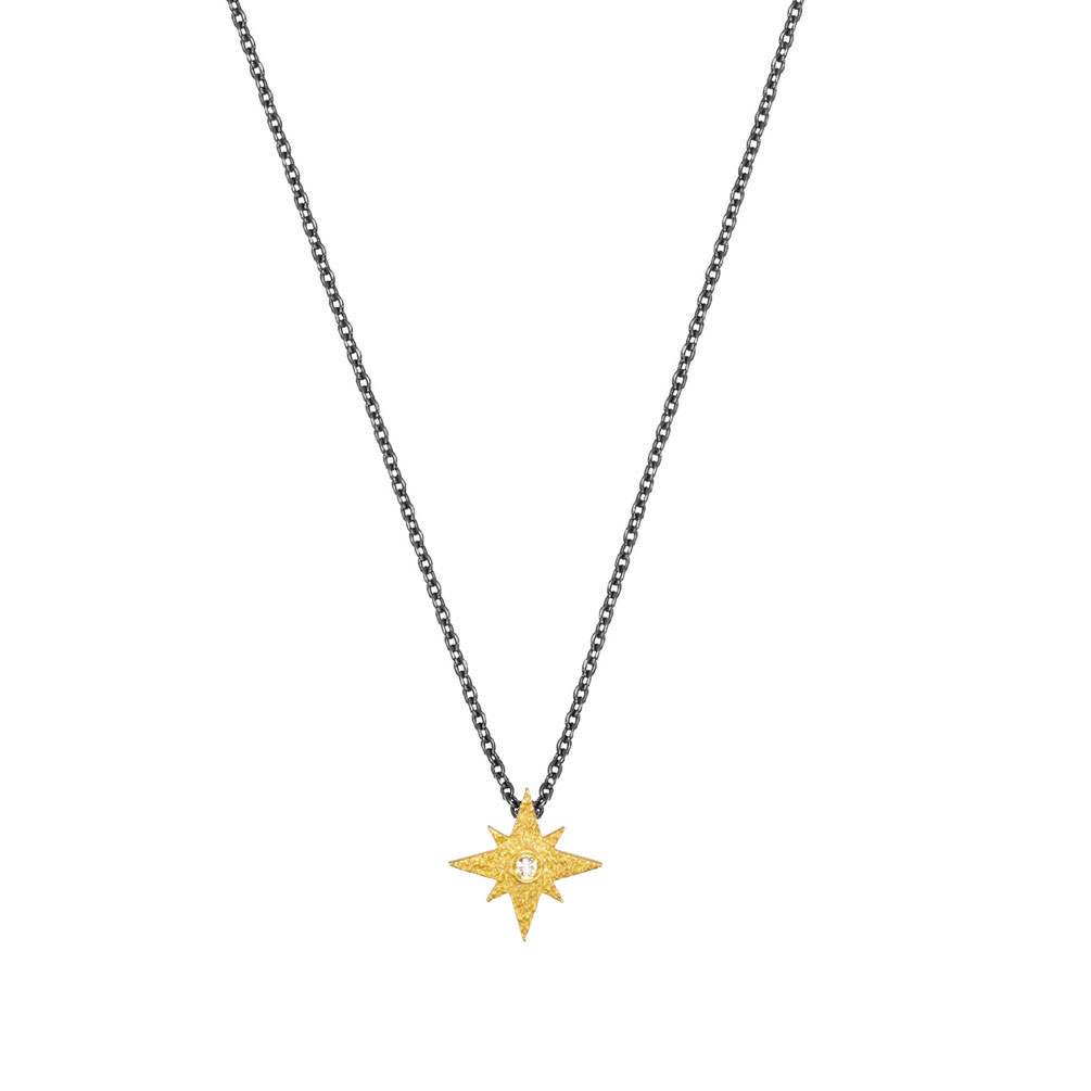 Zauberhafte Halskette von Krinaki Jewelry in schwarzem Silber mit goldenem Stern-Anhänger!