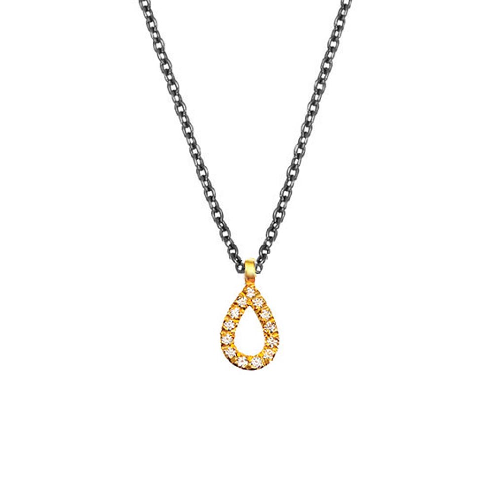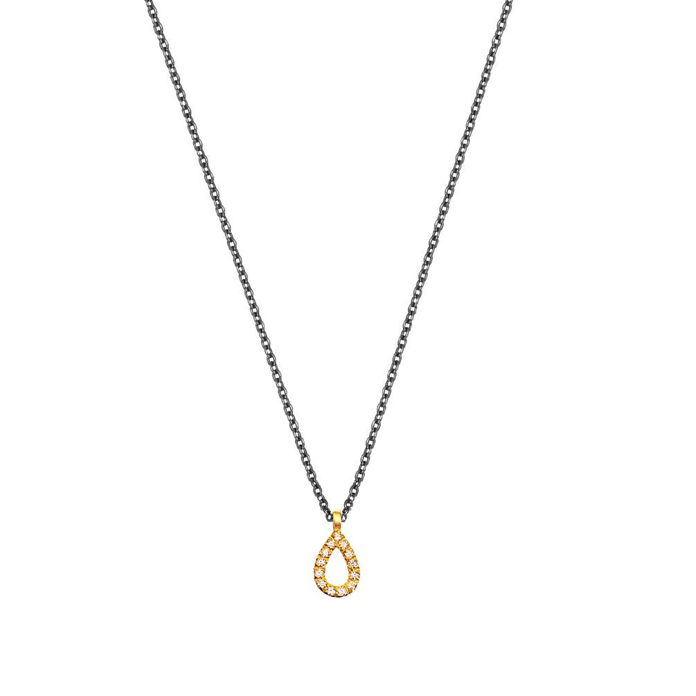 Fabelhafte Halskette von Krinaki Jewelry aus geschwärztem Sterling Silber mit elegantem, funkelndem Tropfen-Anhänger aus Gold und Zirkonias!