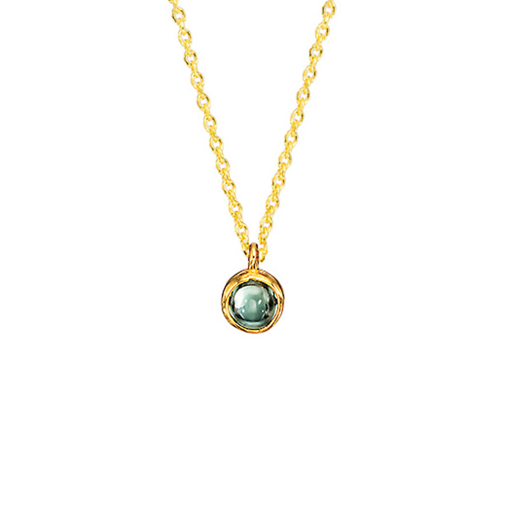 Wunderschöne, schlichte Halskette von Krinaki Jewelry mit rundem, elegantem Anhänger aus grünem Turmalin in goldener Fassung!