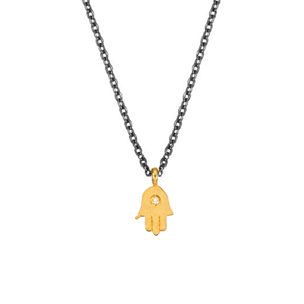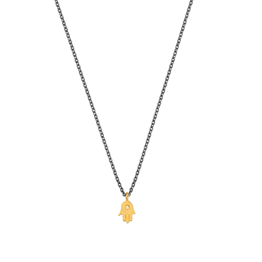 Fantastische Halskette von Krinaki Jewelry aus Schwarzem Silber mit fabelhafter Hand der Fatima!
