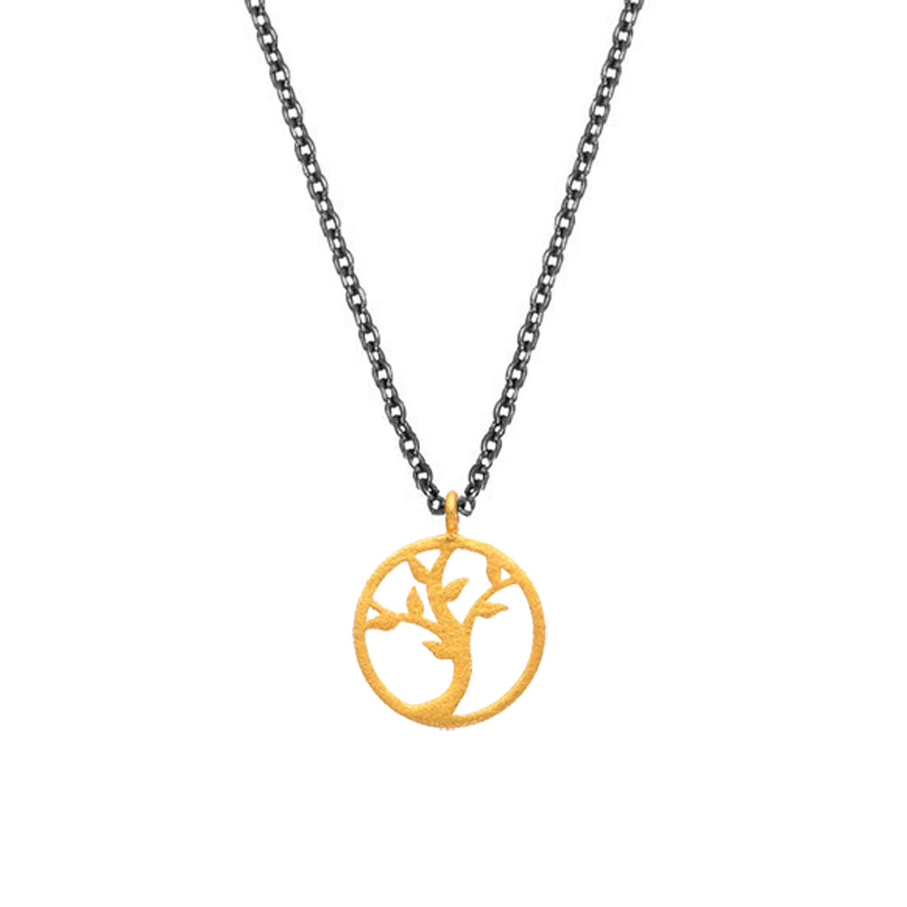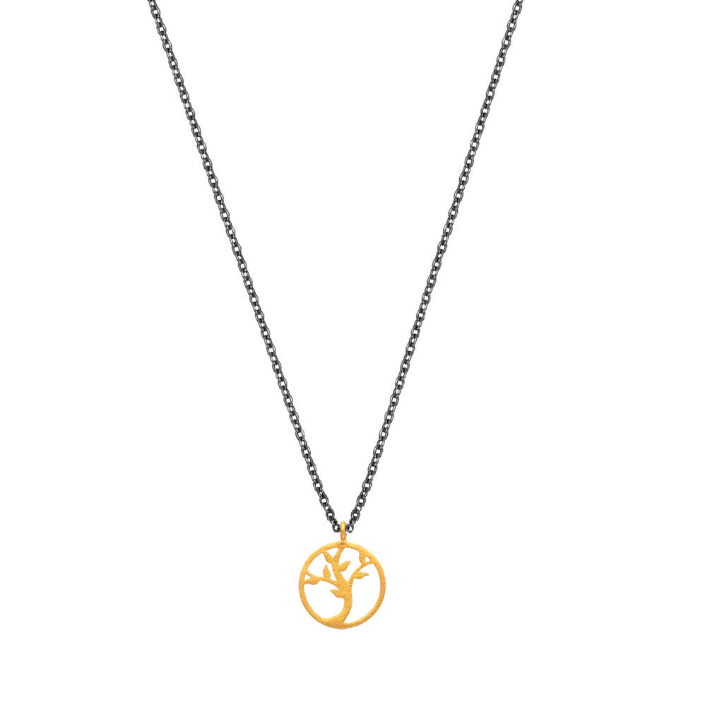 Anmutige Halskette von Krinaki Jewelry aus Schwarzem Silber mit fabelhaftem, austreibendem Lebensbaum aus Gold als Anhänger!