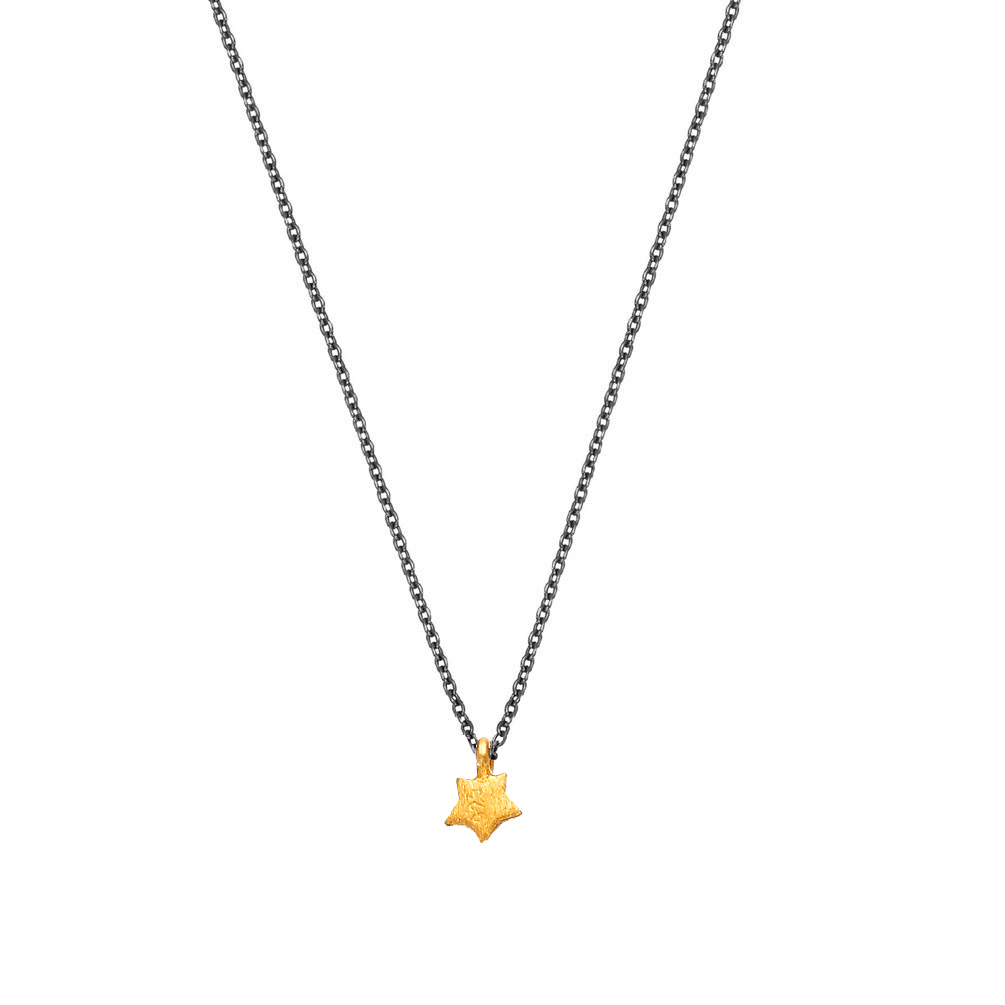 An dieser feinen, schwarze Halskette funkelt ein zauberhafter kleiner Stern von Krinaki Jewelry aus 14 Karat Gold!