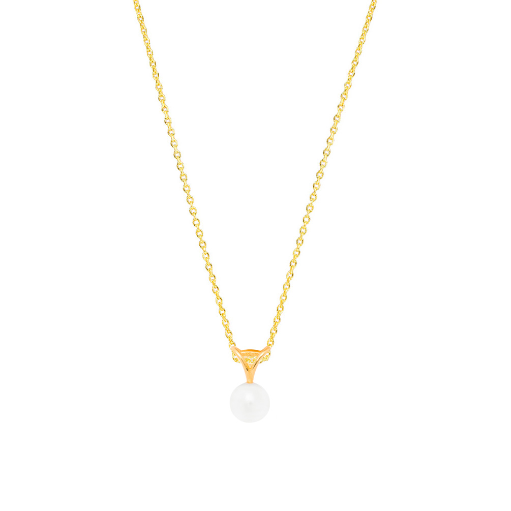 Die elegante Halskette von Krinaki Jewelry trägt eine einzelne Perle mit wunderschöner Fassung!