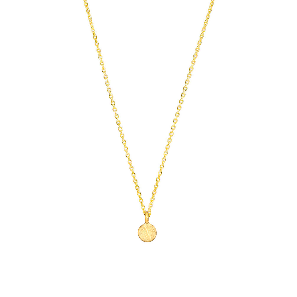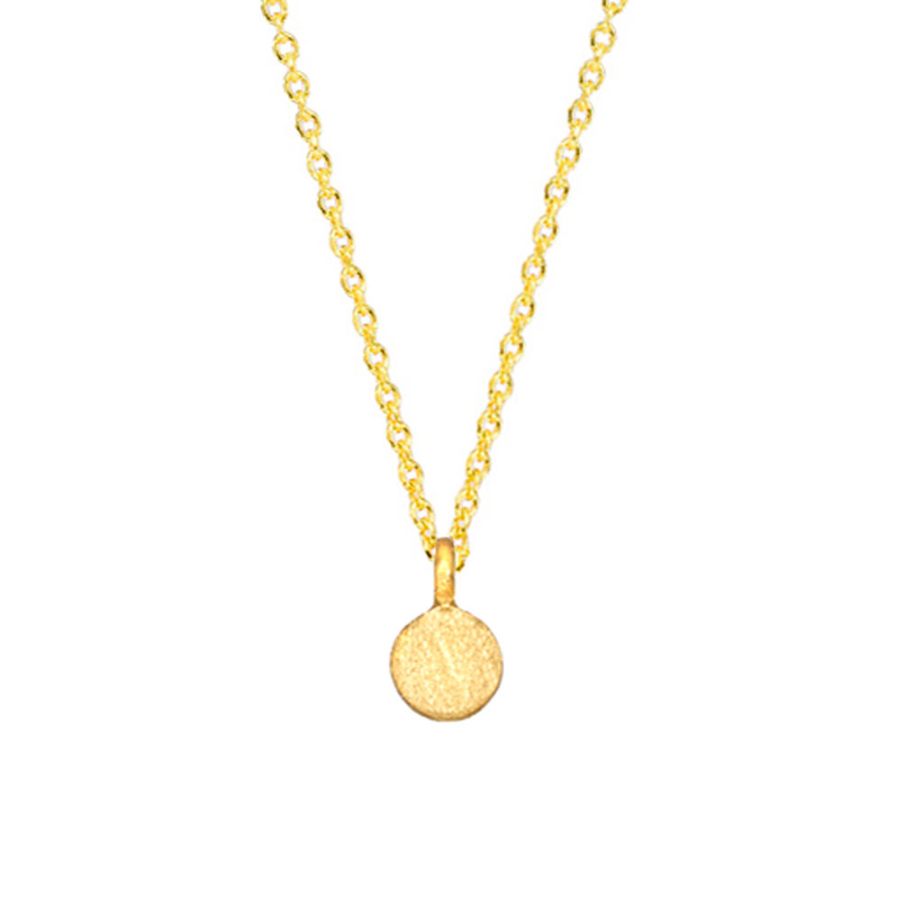 Ein schlichtes und verspieltes kleines Gold-Plättchen als Anhänger an einer feinen goldenen Gliederkette: Diese zauberhafte Halskette von Krinaki Jewelry ist einfach perfekt!