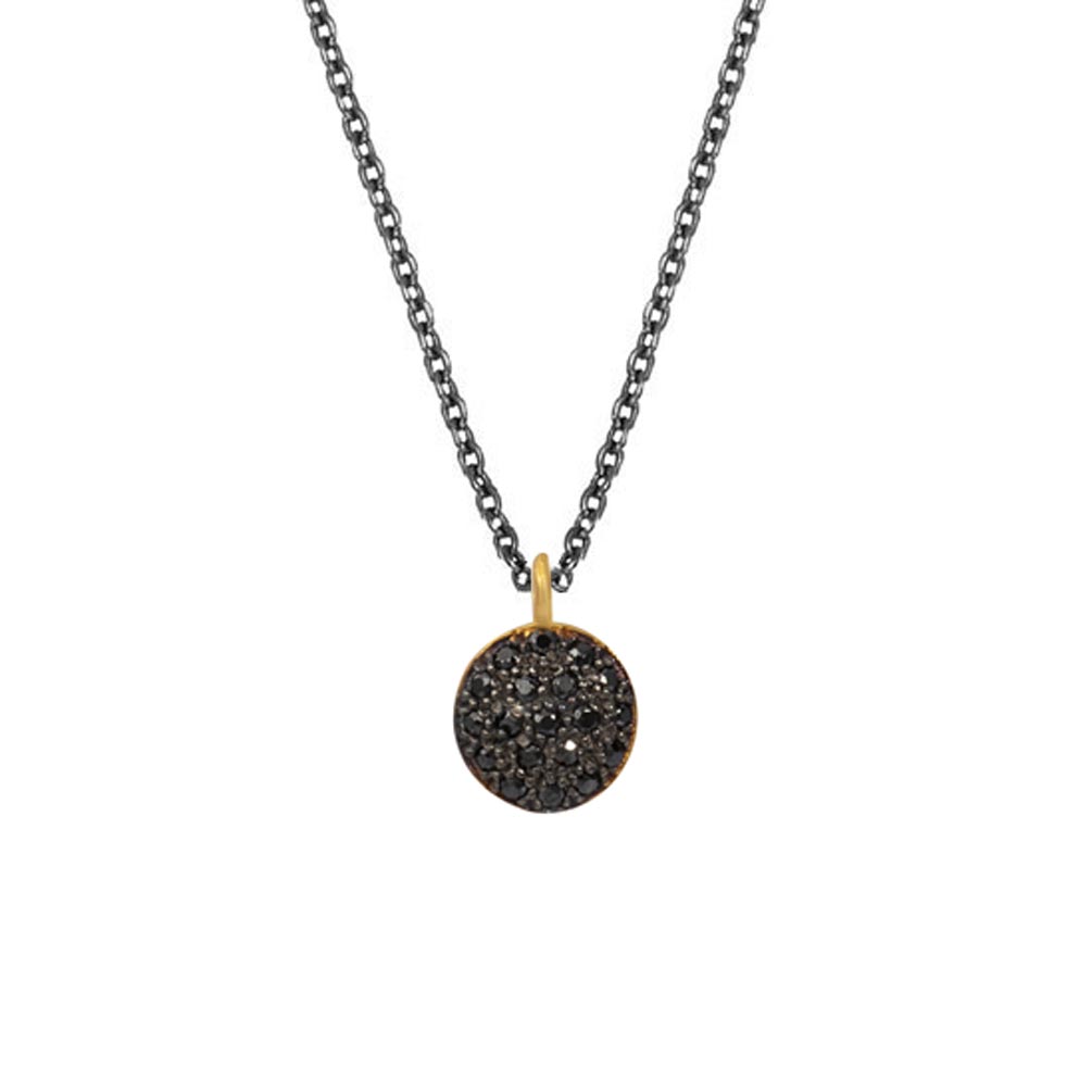 An dieser zauberhaften Halskette von Krinaki Jewelry aus schwarzem Silber funkelt ein goldener Anhänger, besetzt mit schwarzen Zirkonias!