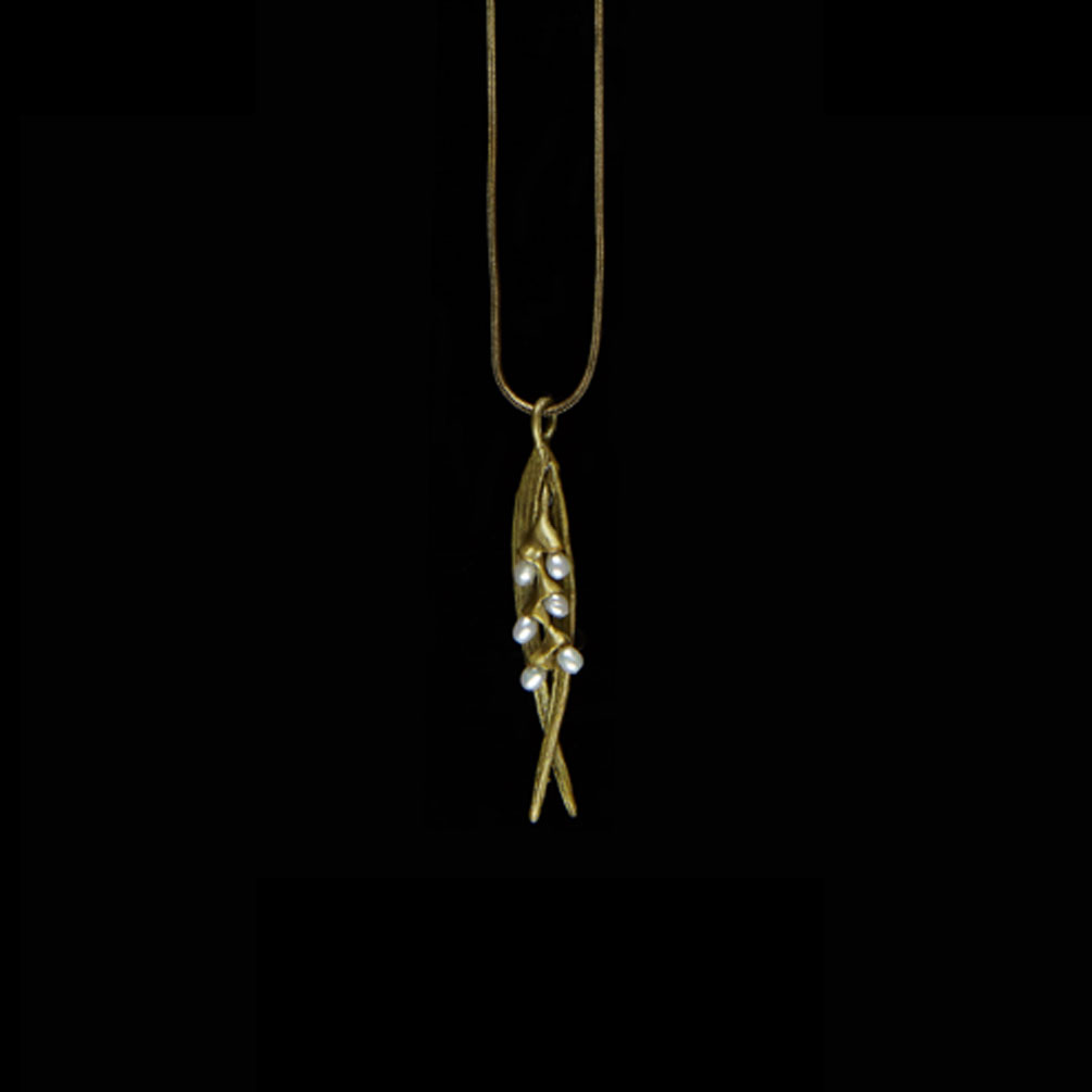 Fantastische Michael Michaud Halskette mit Reisähre aus patinierter Bronze und schimmernden Perlen als Anhänger!