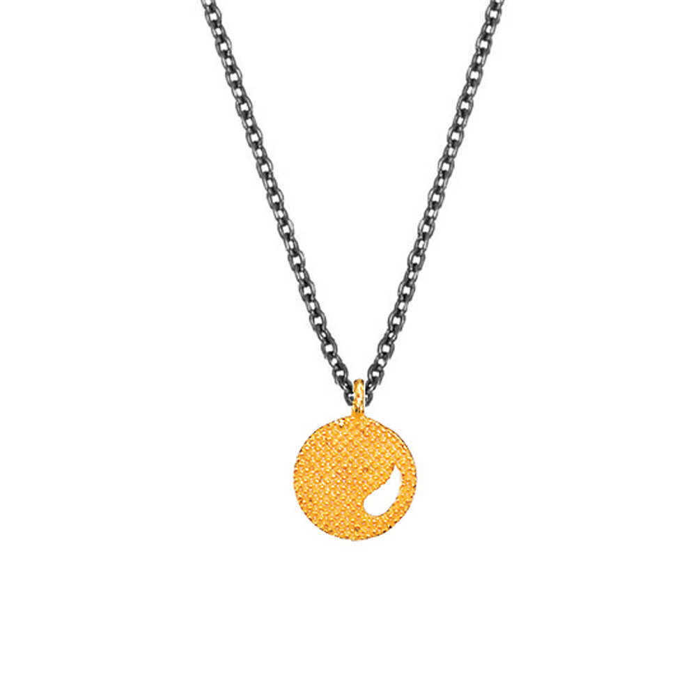 Zauberhafte Halskette von Krinaki Jewelry in schwarzem Silber mit Tropfen in einem goldenem Plättchen-Anhänger!