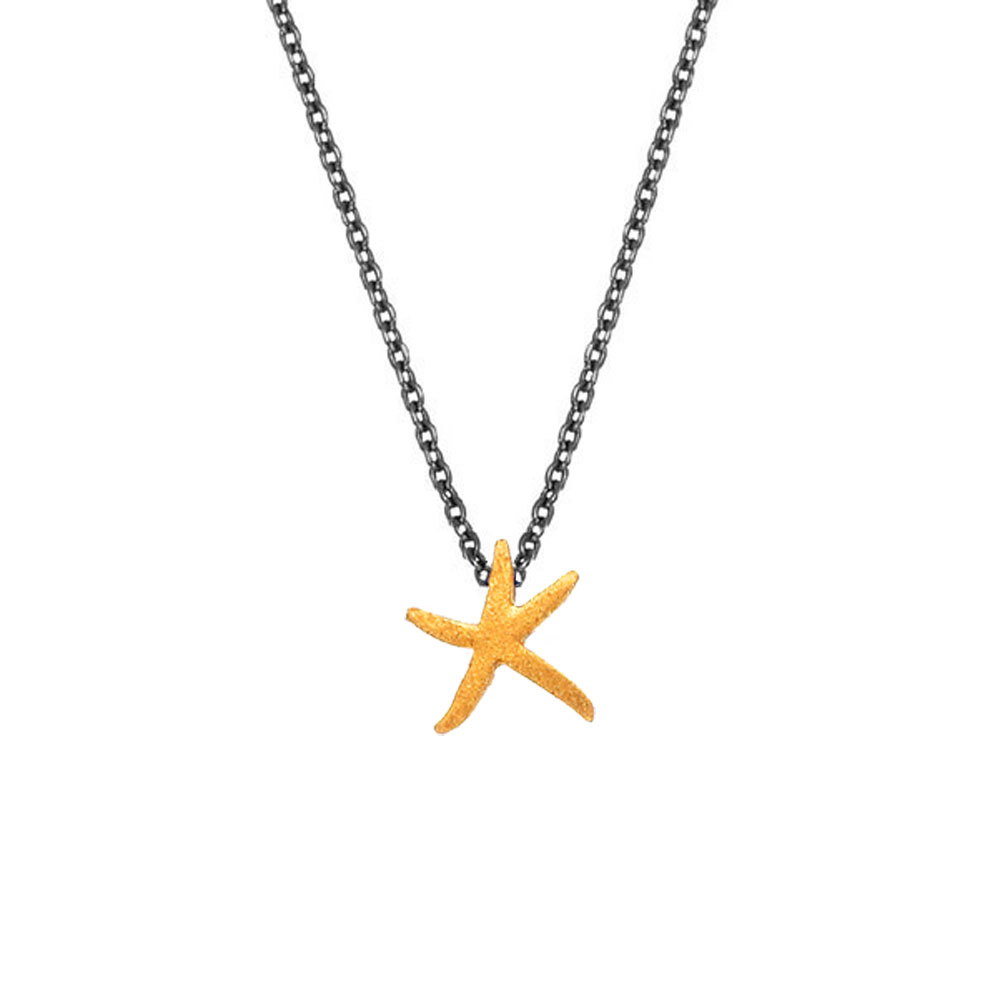 Wunderschöne Halskette von Krinaki Jewelry aus Schwarzem Silber mit bezauberndem, goldenem Seestern als Anhänger!
