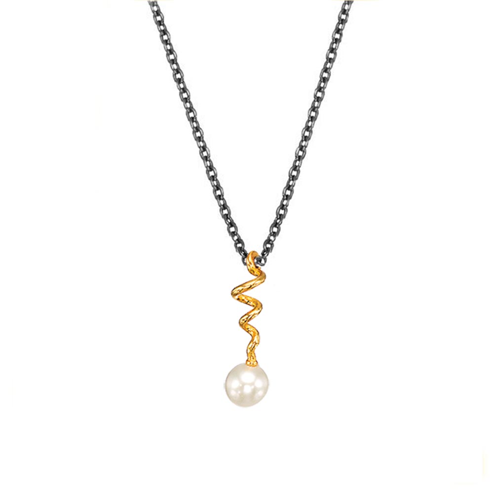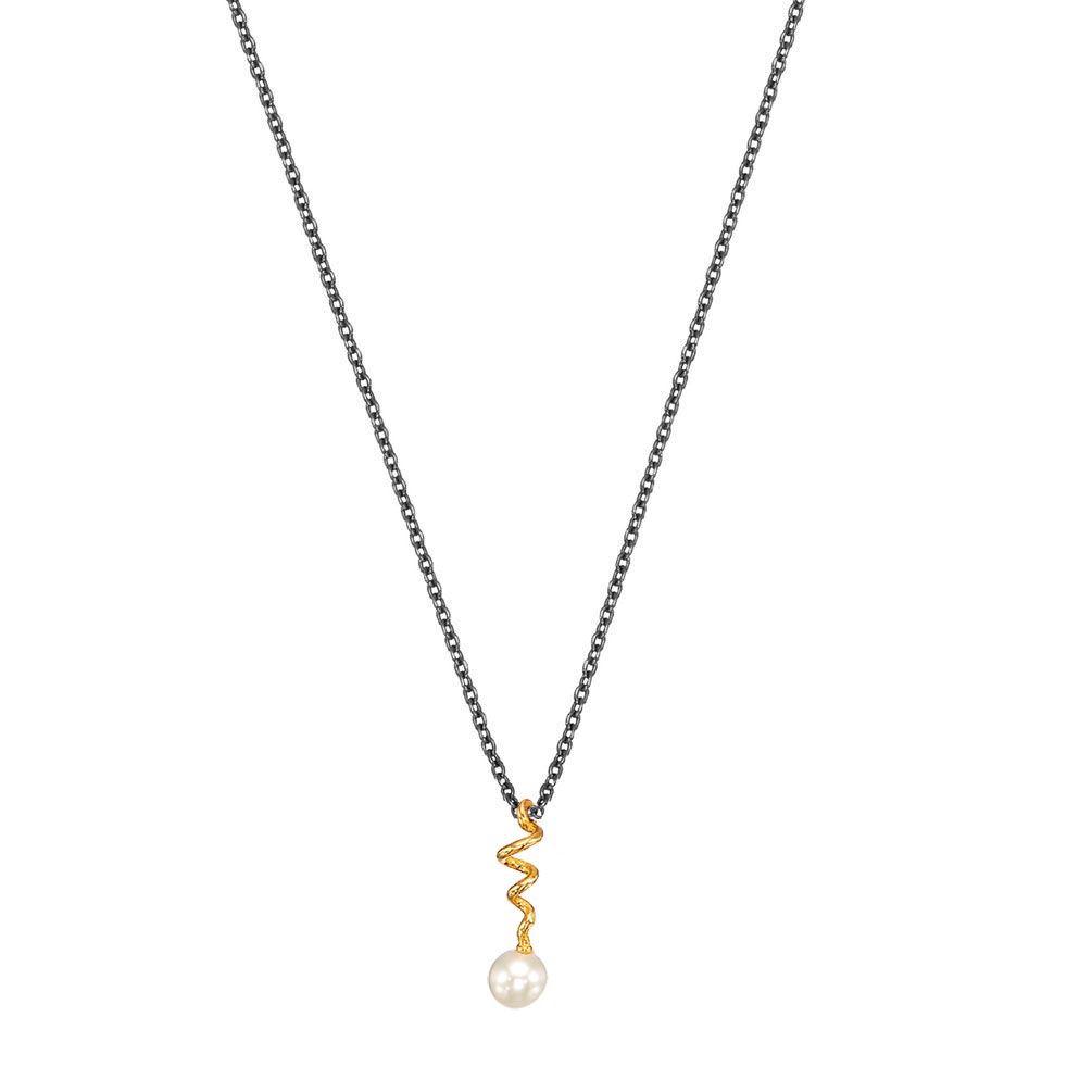 Verspielte, bezaubernde Halskette von Krinaki Jewelry aus geschwärztem Sterling Silber mit filigraner Gold-Spirale und schimmernder Perle!