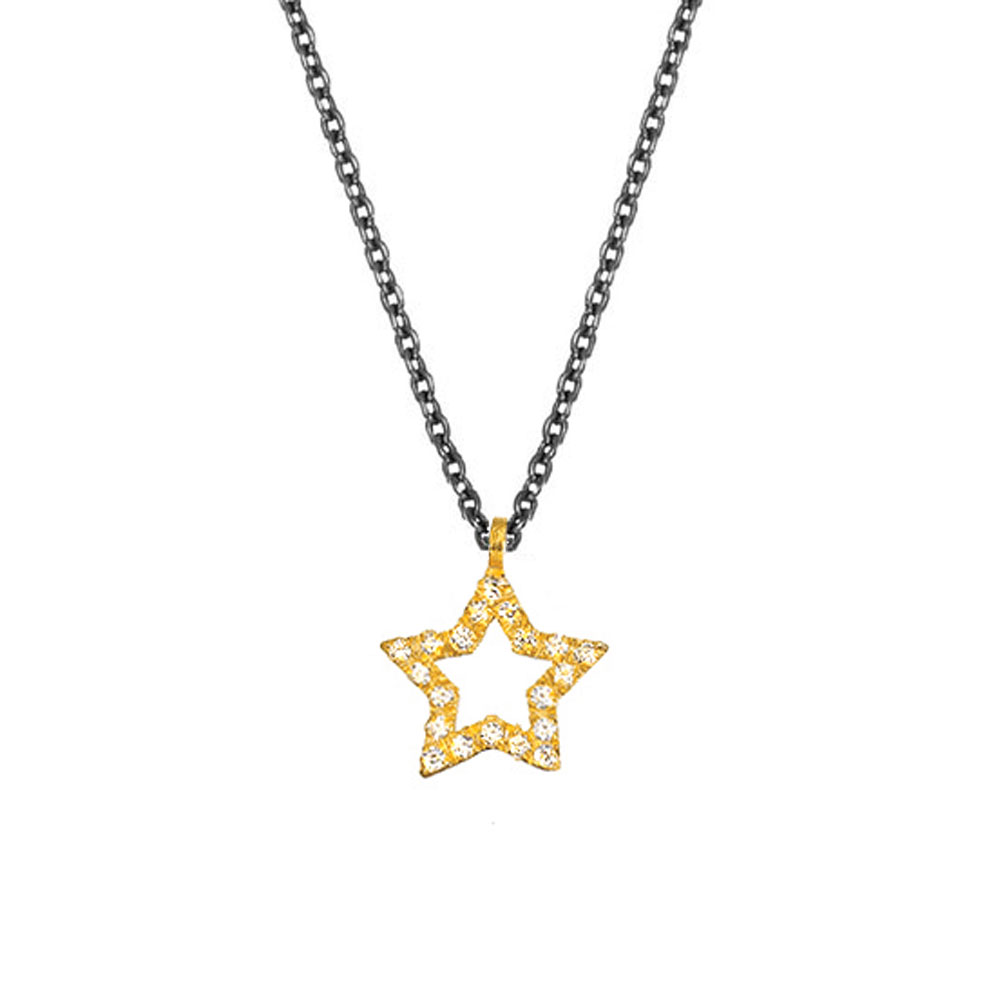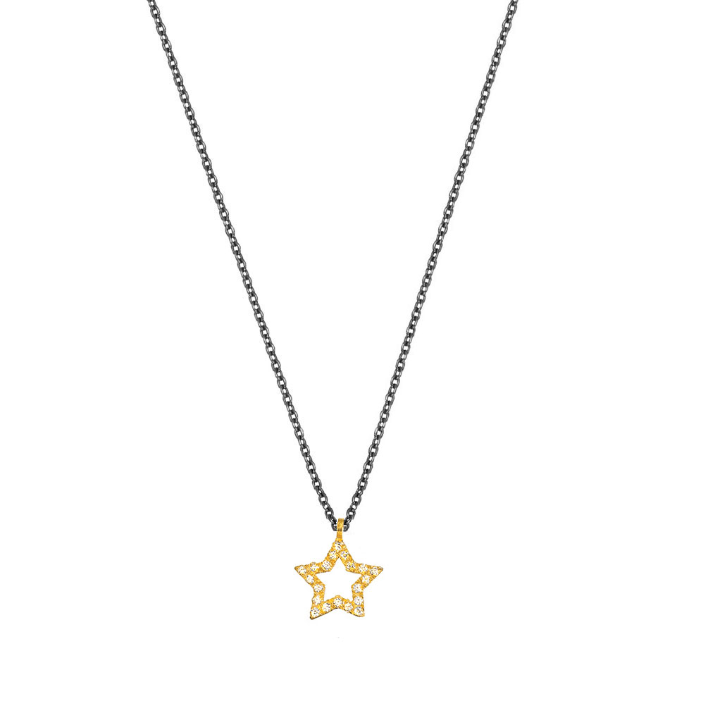 Zauberhaft funkelnde Halskette von Krinaki Jewelry mit goldenem, zirkonia-besetztem Stern-Anhänger!