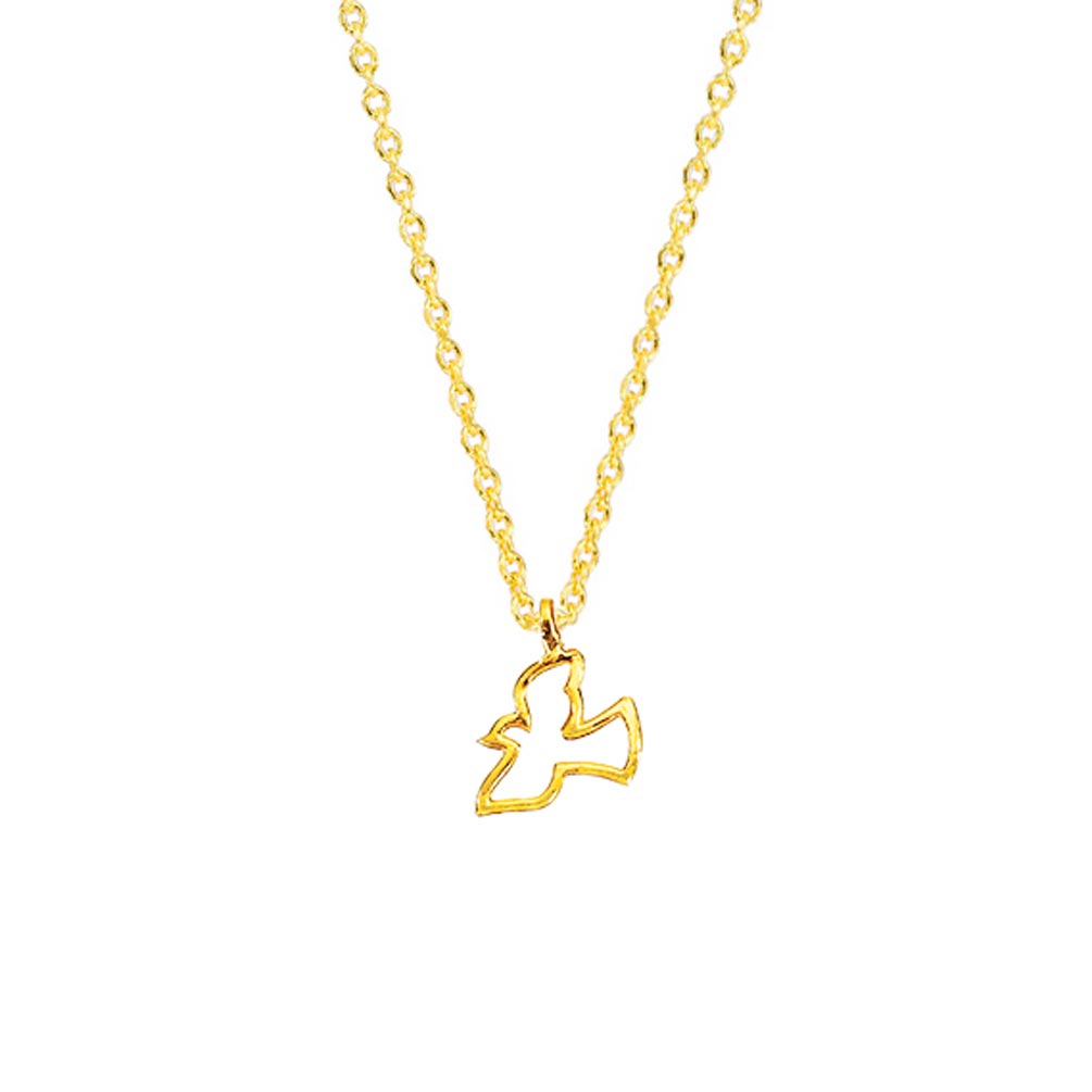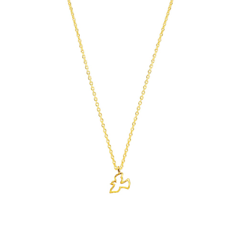 An dieser fantastischen, filigranen Halskette von Krinaki Jewelry fliegt eine zauberhafte kleine Taube!