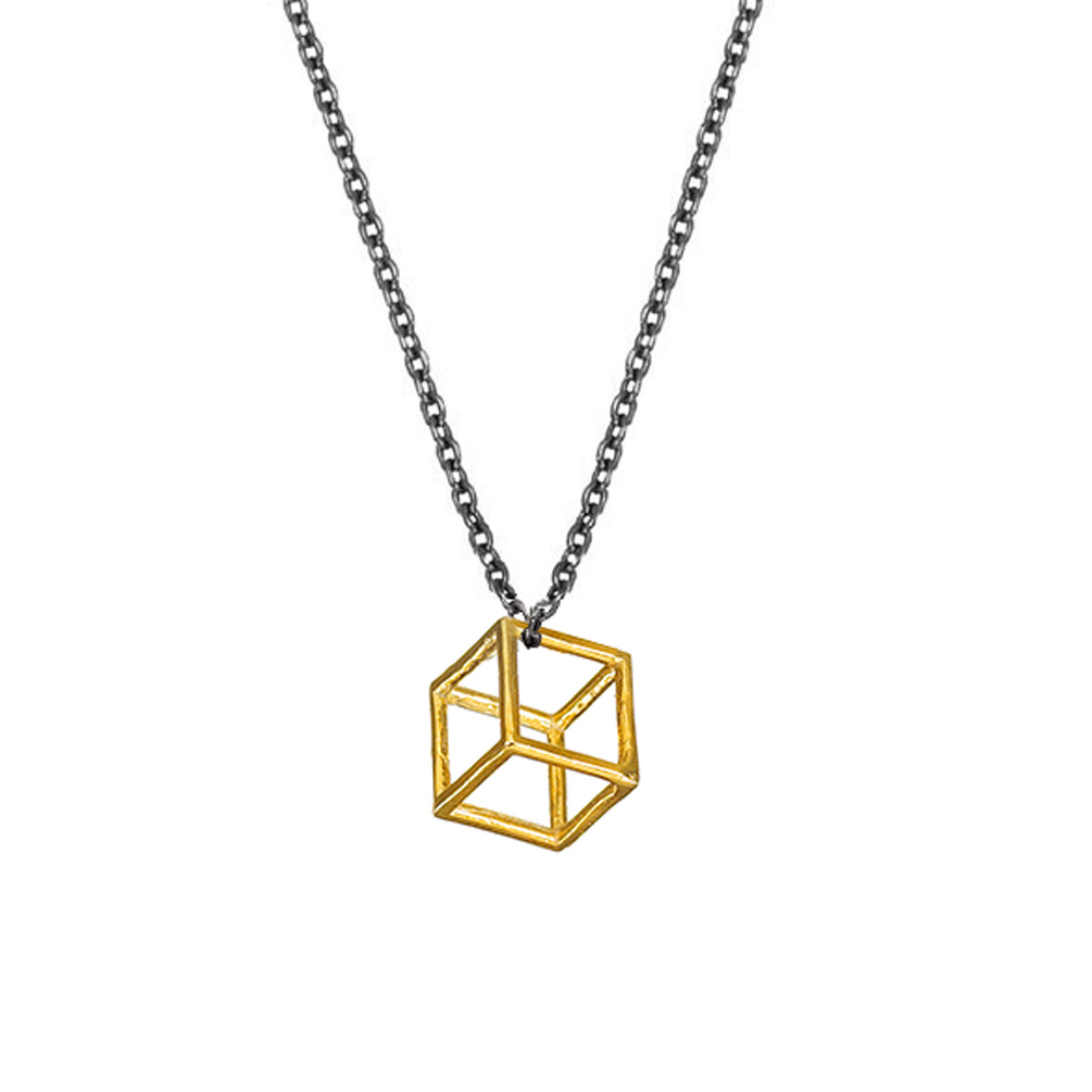 Fantastische, schwarze Halskette mit wundervollem Würfelanhänger aus14 Karat Gold von Krinaki Jewelry!
