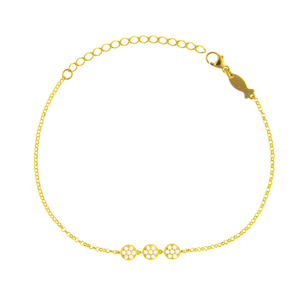 Entzückendes, goldenes Kurshuni Armband mit drei funkelnden, zirkonia-besetzten Scheiben!