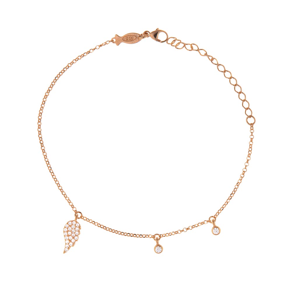 Beschwingtes, roségoldenes Kurshuni Armband mit funkelndem Engelsflügel und kleinen Zirkonia-Anhängern!