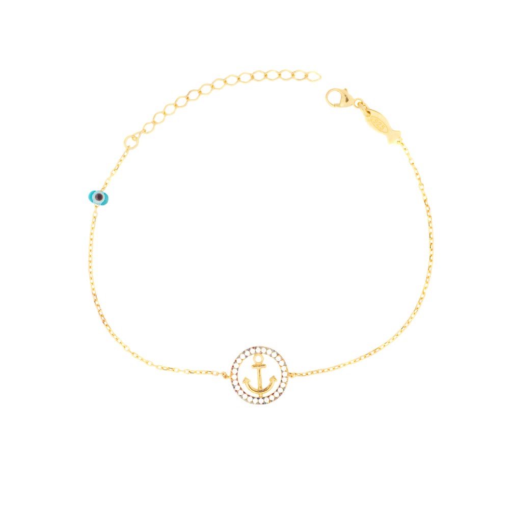 Süßes kleines Kurshuni Armband mit funkelndem Anker aus vergoldetem Sterling Silber und Zirkonias!