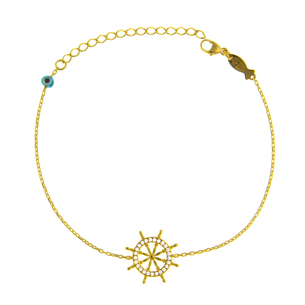 Nautisches kleines Armband mit funkelndem Steuerrad aus vergoldetem Sterling Silber mit Zirkonias!
