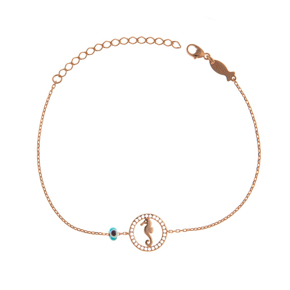 Entzückendes, roségoldenes Armband von Kurshuni mit bezauberndem Seepferdchen in einem Ring aus funkelnden Zirkonias!