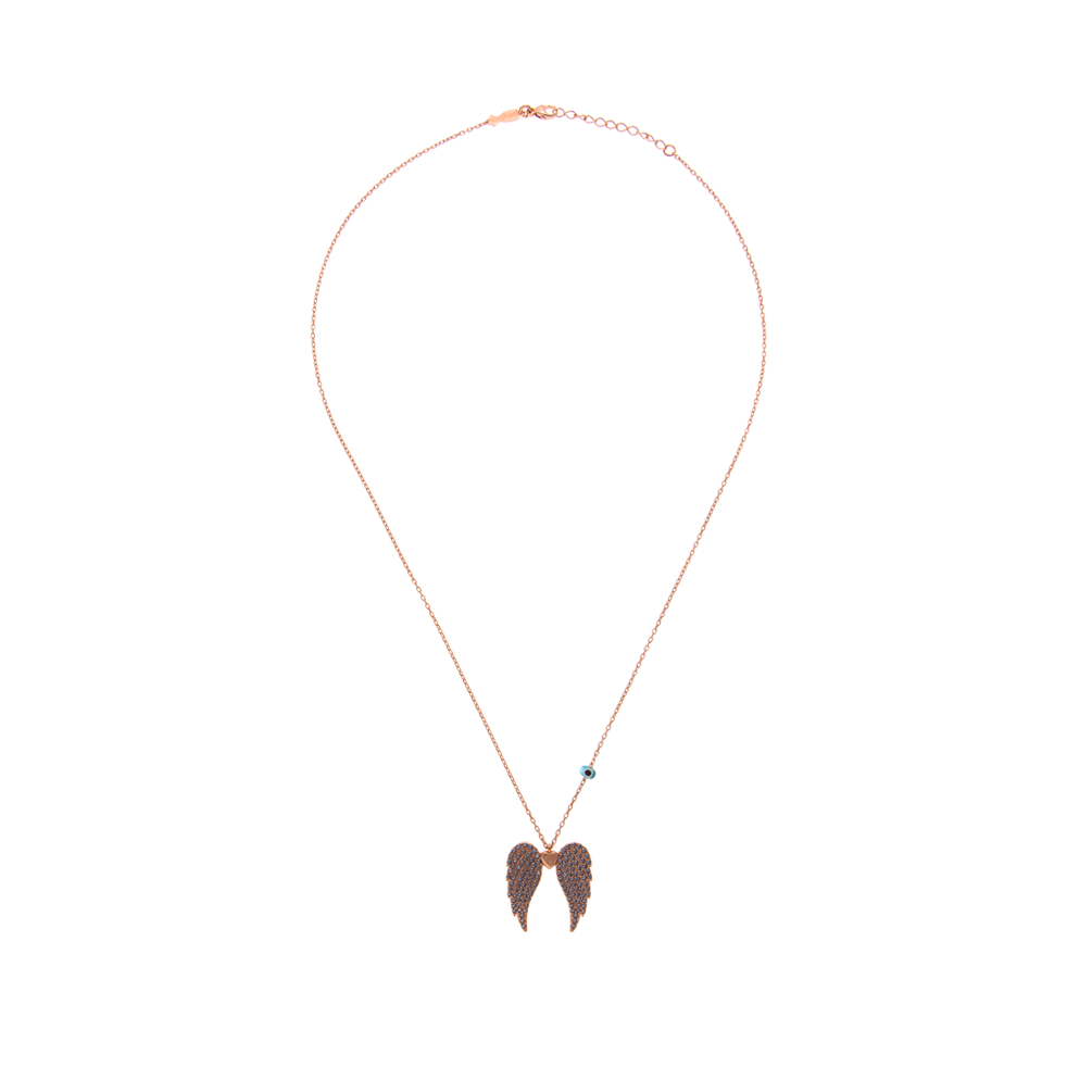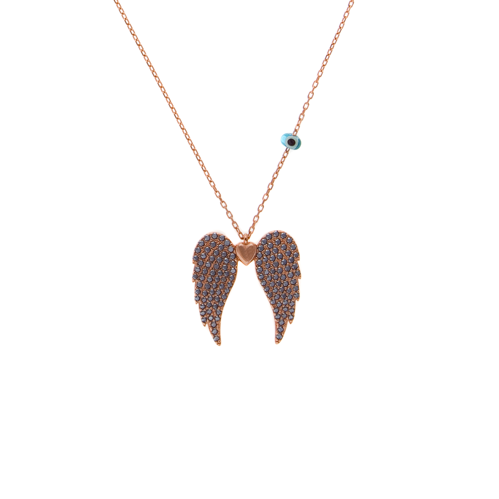 Herrliche Kurshuni Halskette aus rosévergoldetem Sterling Silber mit wunderschönen Engelsflügeln besetzt mit Silizium Kristallen!